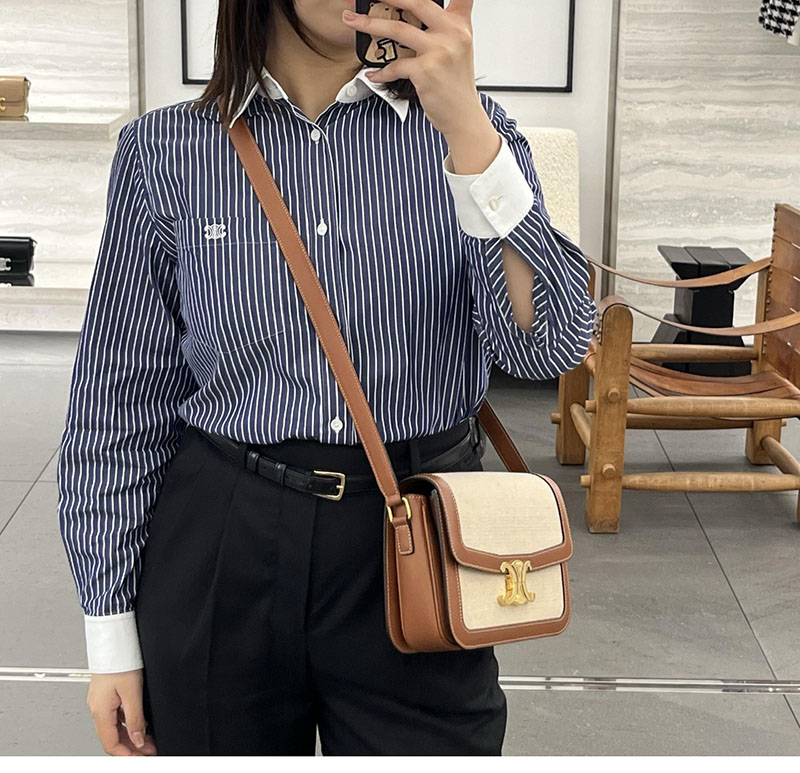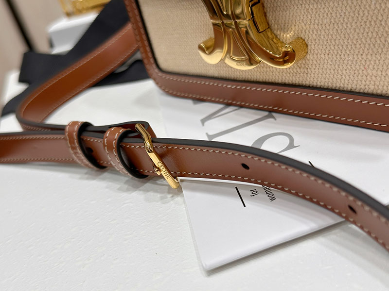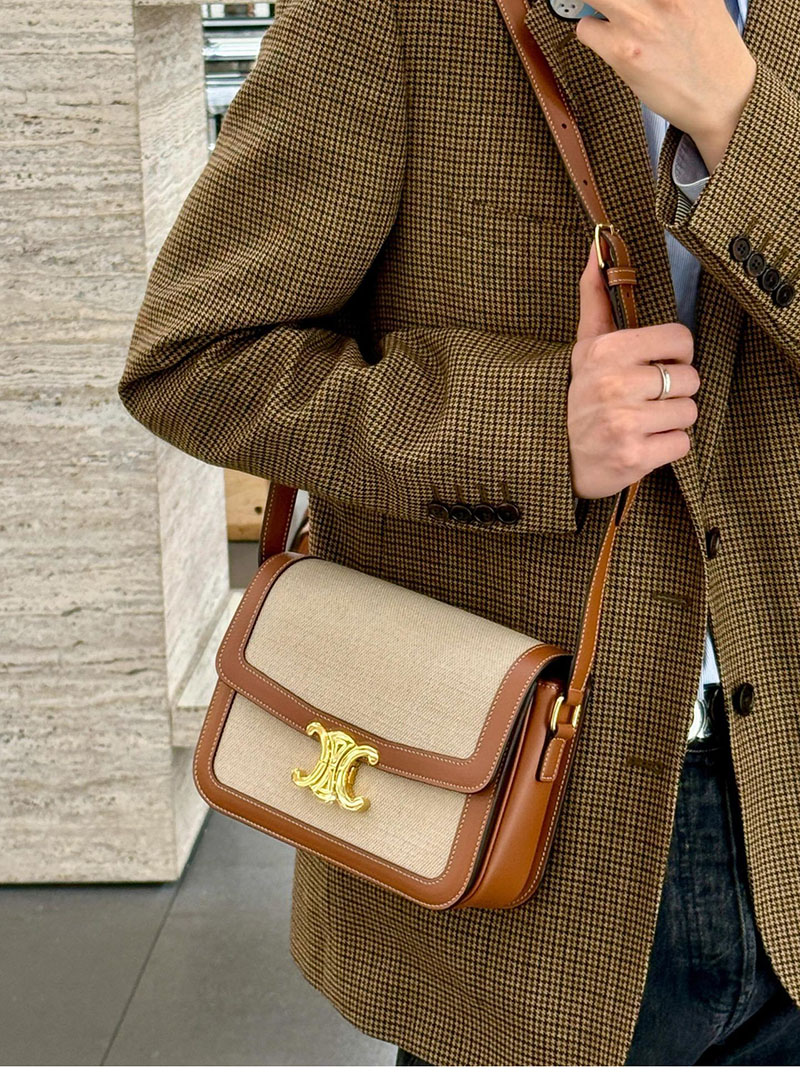 【백경】셀린느 틴 트리옹프 백 텍스타일 카프스킨 네추럴 탄 188882