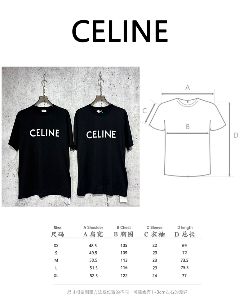 【사슬공장】셀린느 로고 코튼 반팔 티셔츠 블랙