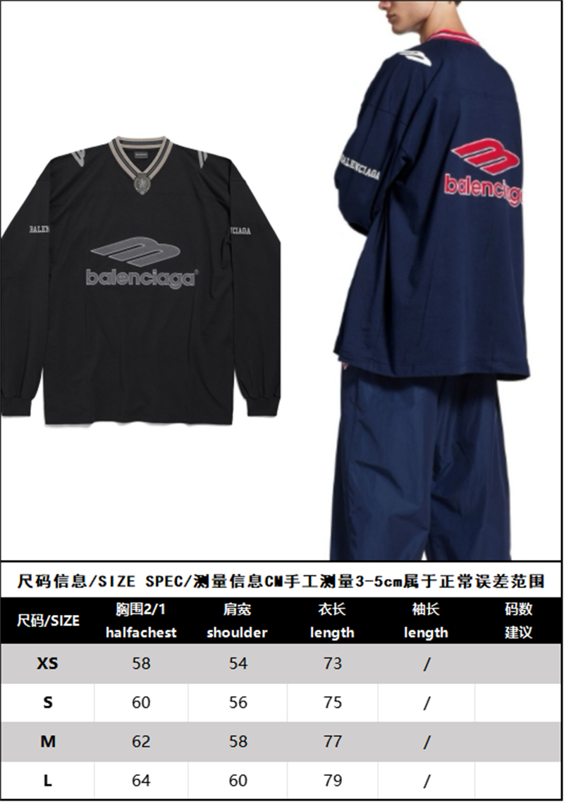 【잔디집】발렌시아가 3B 풋볼 롱 슬리브 V넥 티셔츠(레어)
