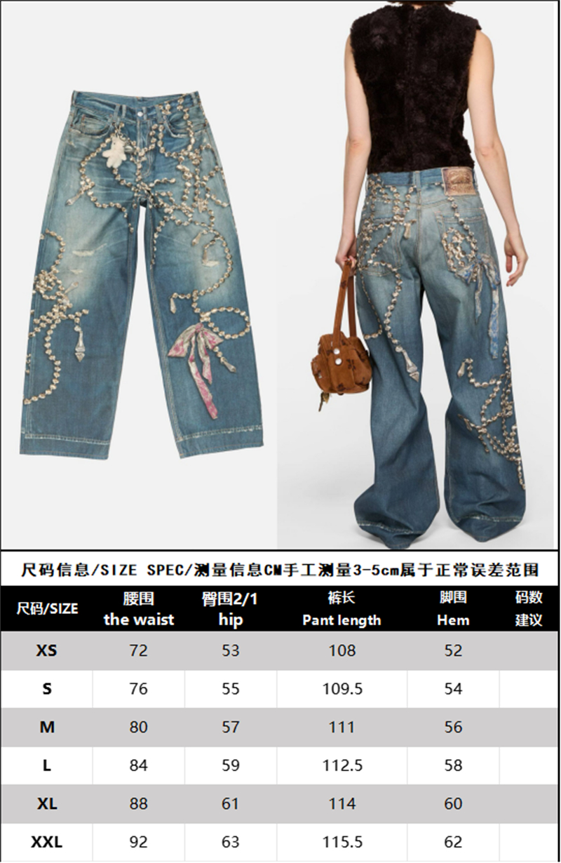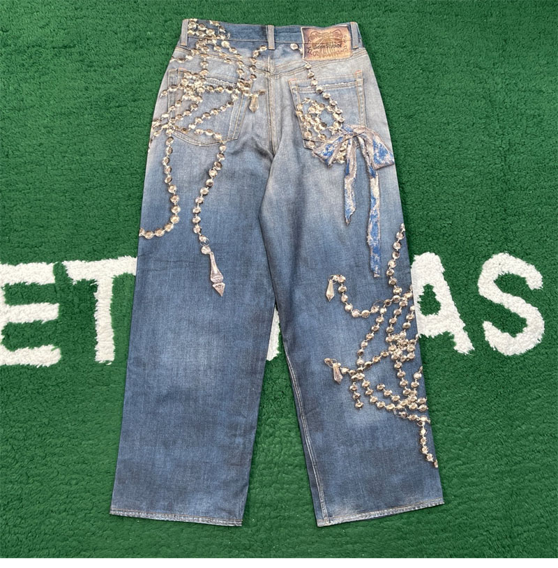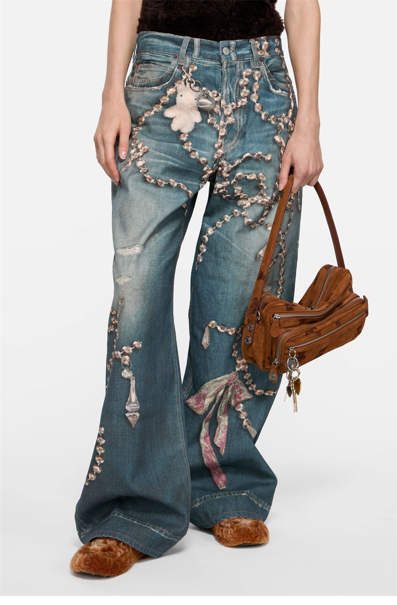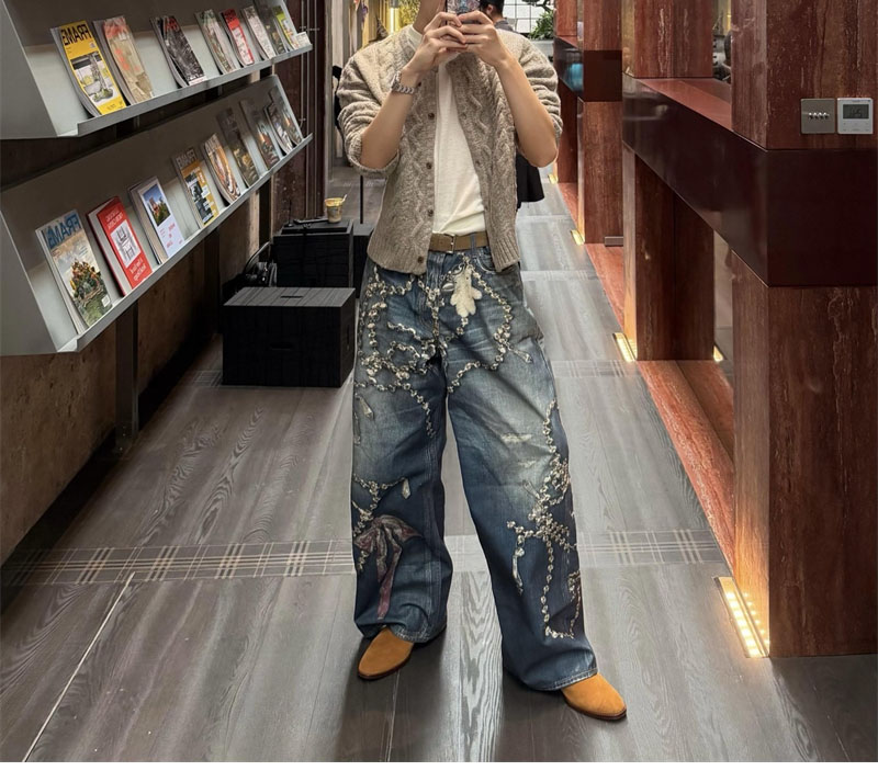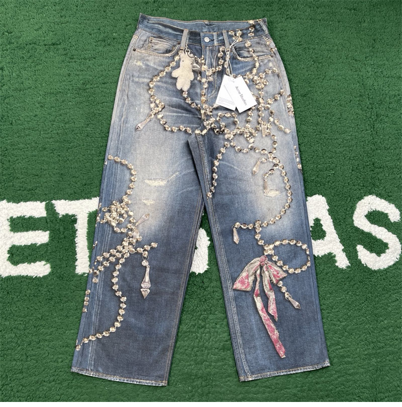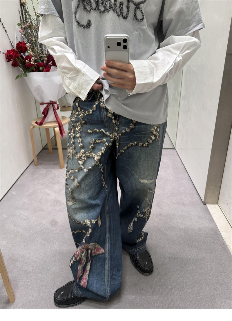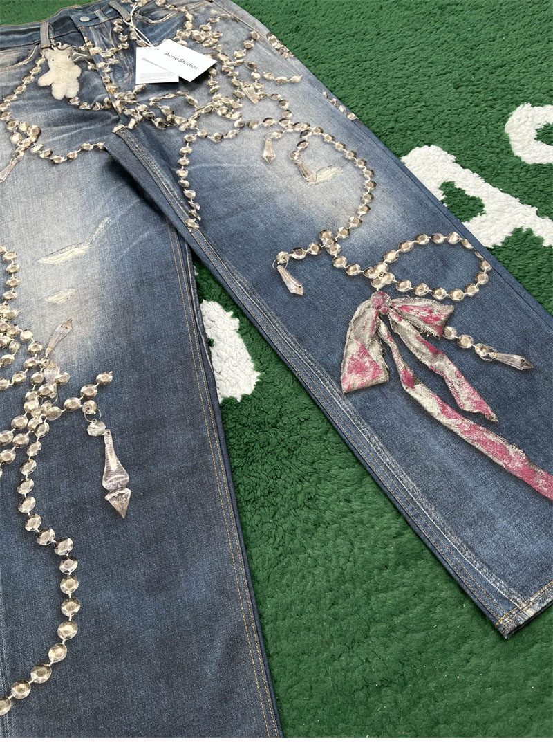 【잔디집】아크네 크리스털 리본 트롱프뢰유 프린트 루즈 핏 진(레어)