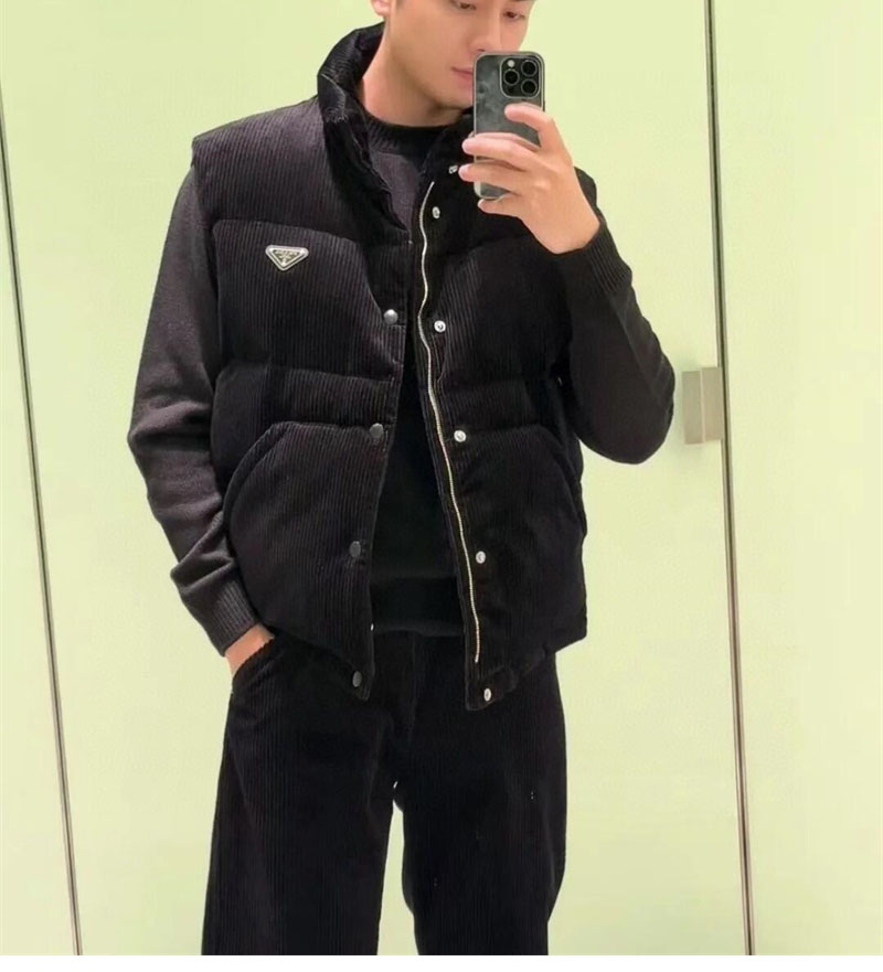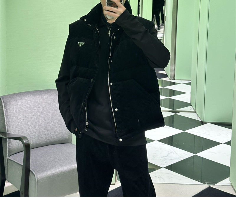 【잔디집】프라다 트라이앵글 로고 코듀로이 다운 베스트(레어)