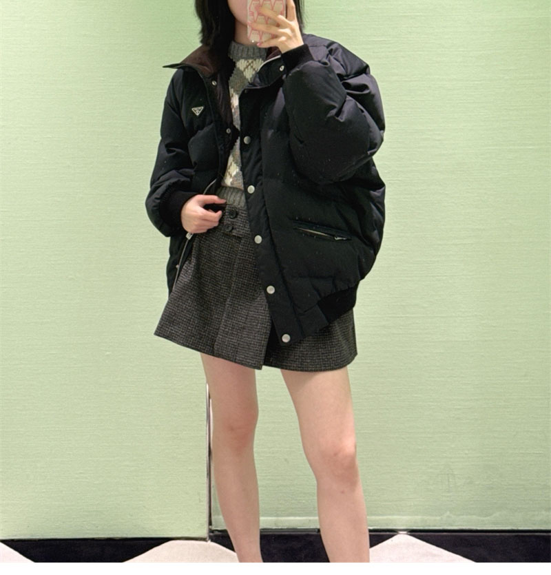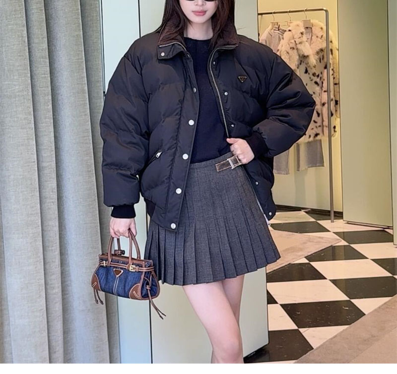 【잔디집】프라다 트라이앵글 로고 크롭 컴팩트 다운 패딩 자켓 (레어)