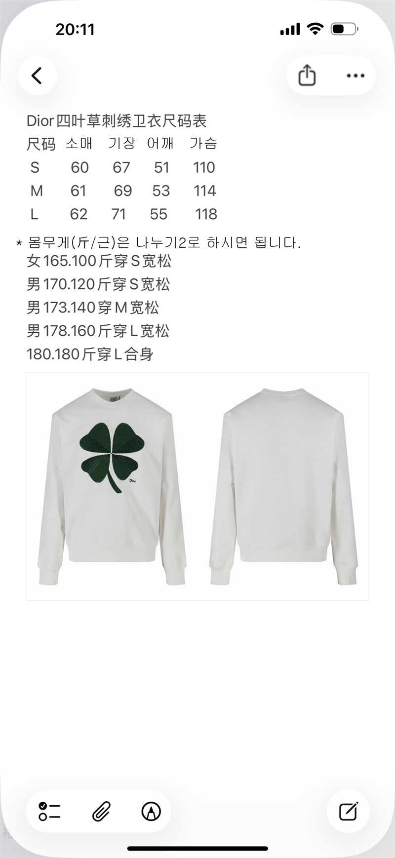 【잔디집2】디올 클로버 자수 스웨트셔츠 맨투맨 (세븐)