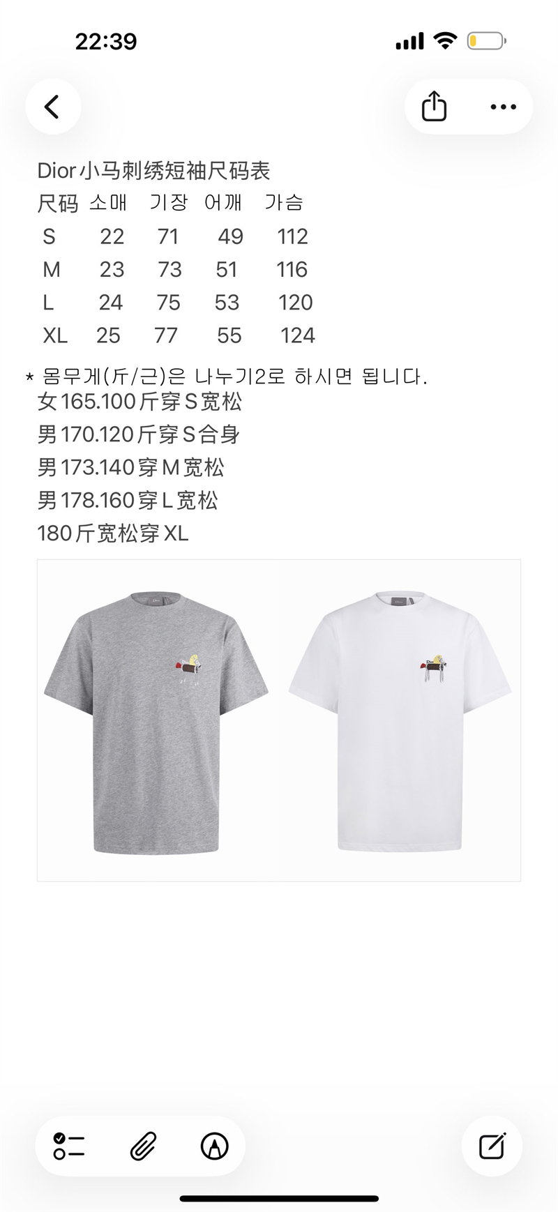 【잔디집2】디올 홀스 자수 캐주얼 티셔츠(세븐)