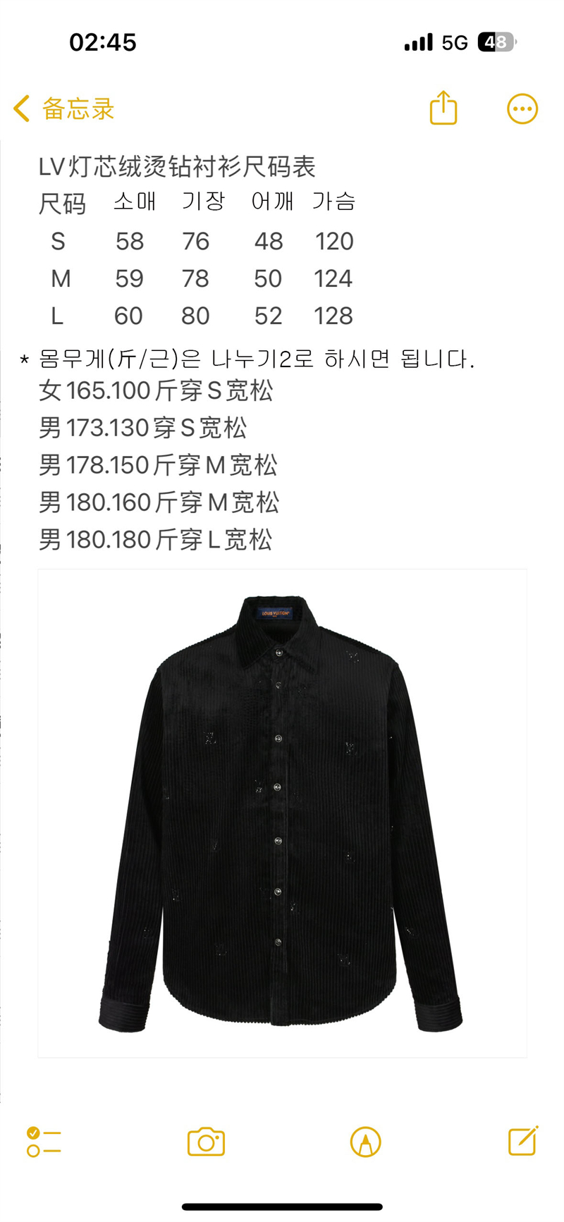 【잔디집2】루이비통 버튼 다운 롱 슬리브드 코듀로이 셔츠(세븐)