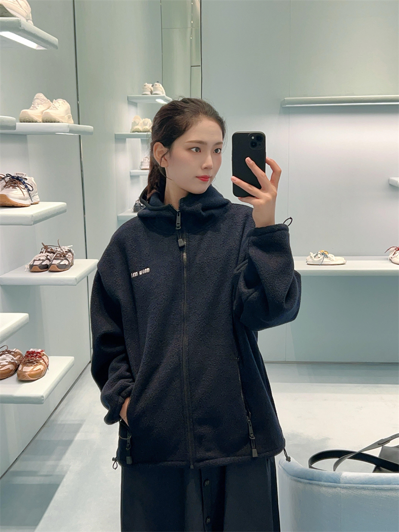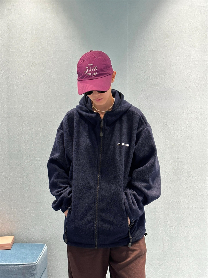【잔디집2】미우미우 로고 모티프 후드 집업 플리스 자켓(세븐)