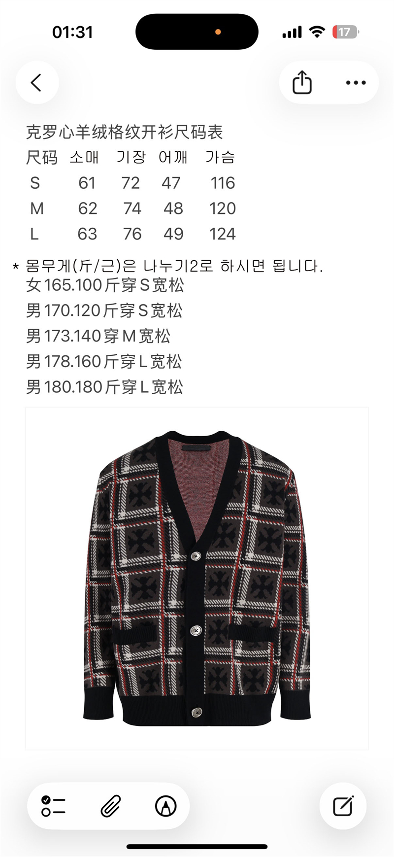 【잔디집2】크롬하츠 캐시미어 브레드 크로스 플레이드 가디건 (세븐)