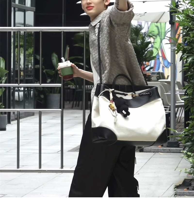 【징공장】보테가베네타 안디아모 캔버스 라지 백 블랙 금장 786194 (JING공장)