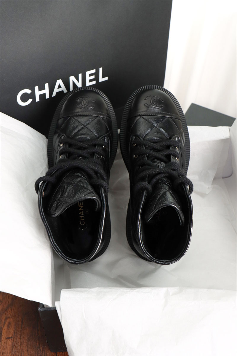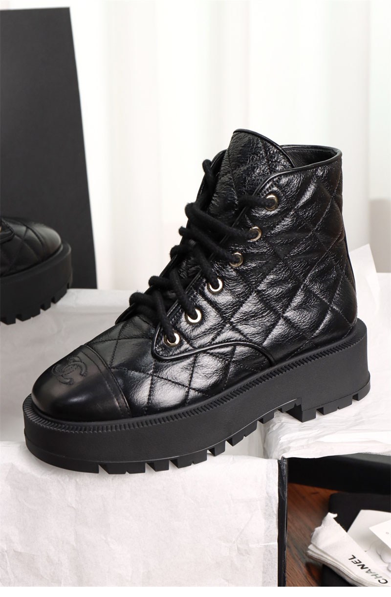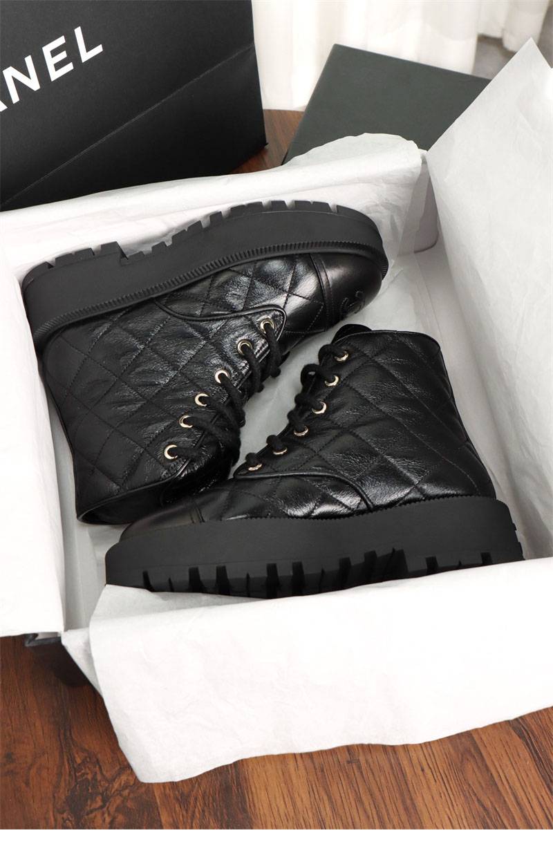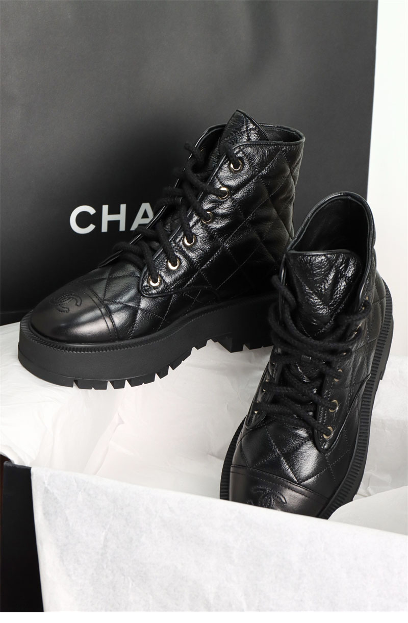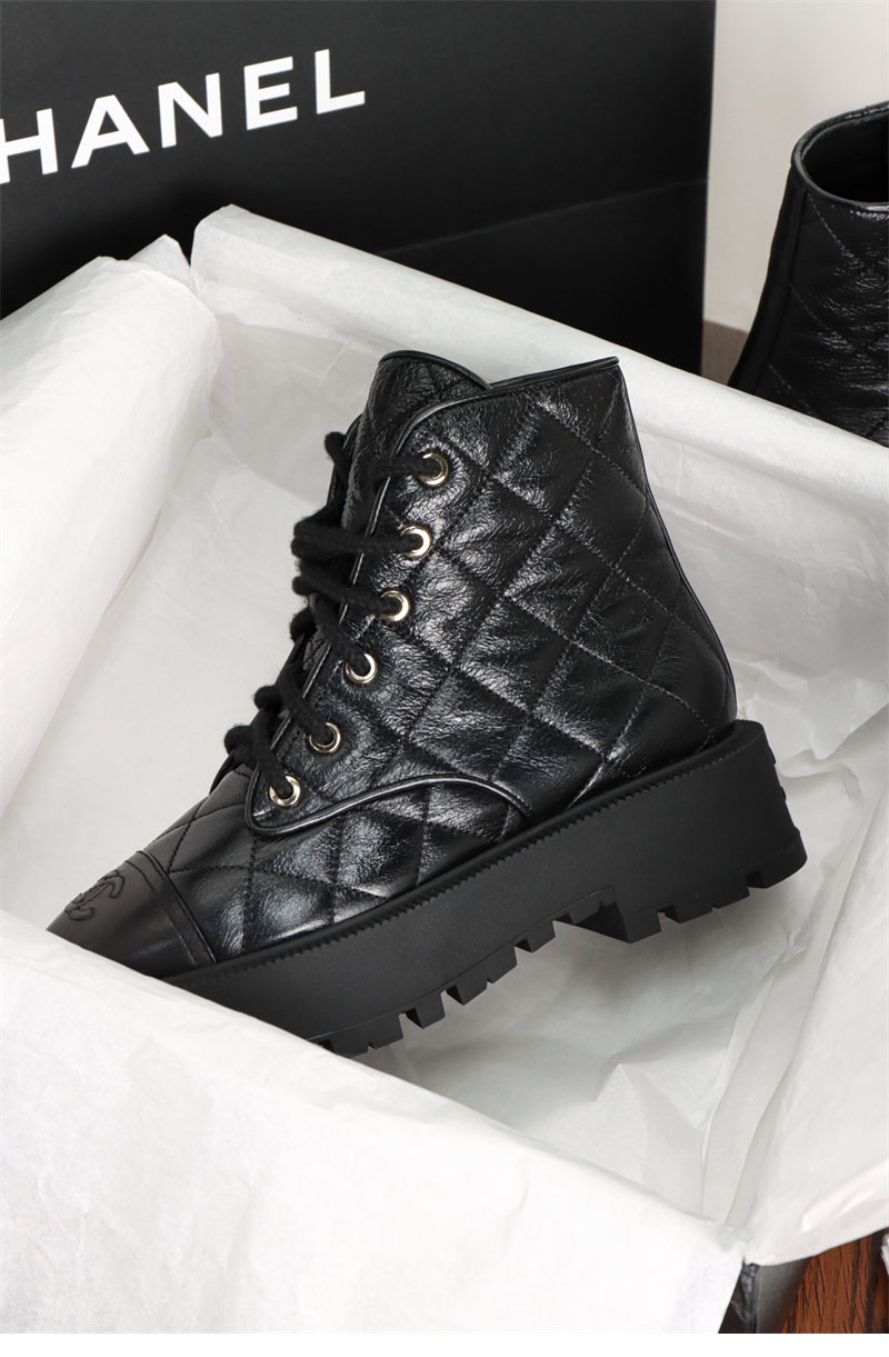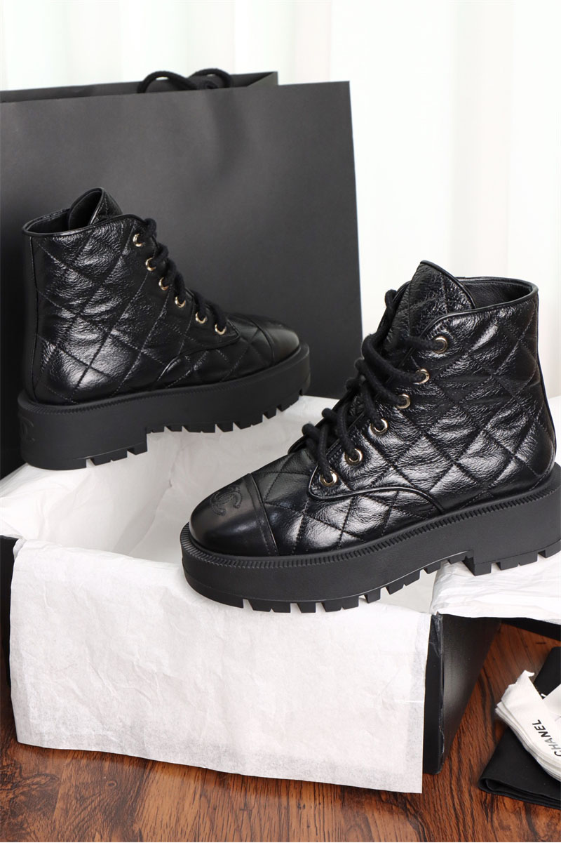 【터보】샤넬 24A 퀼팅 레더 플랫폼 컴뱃 앵클 부츠(TJ공장)