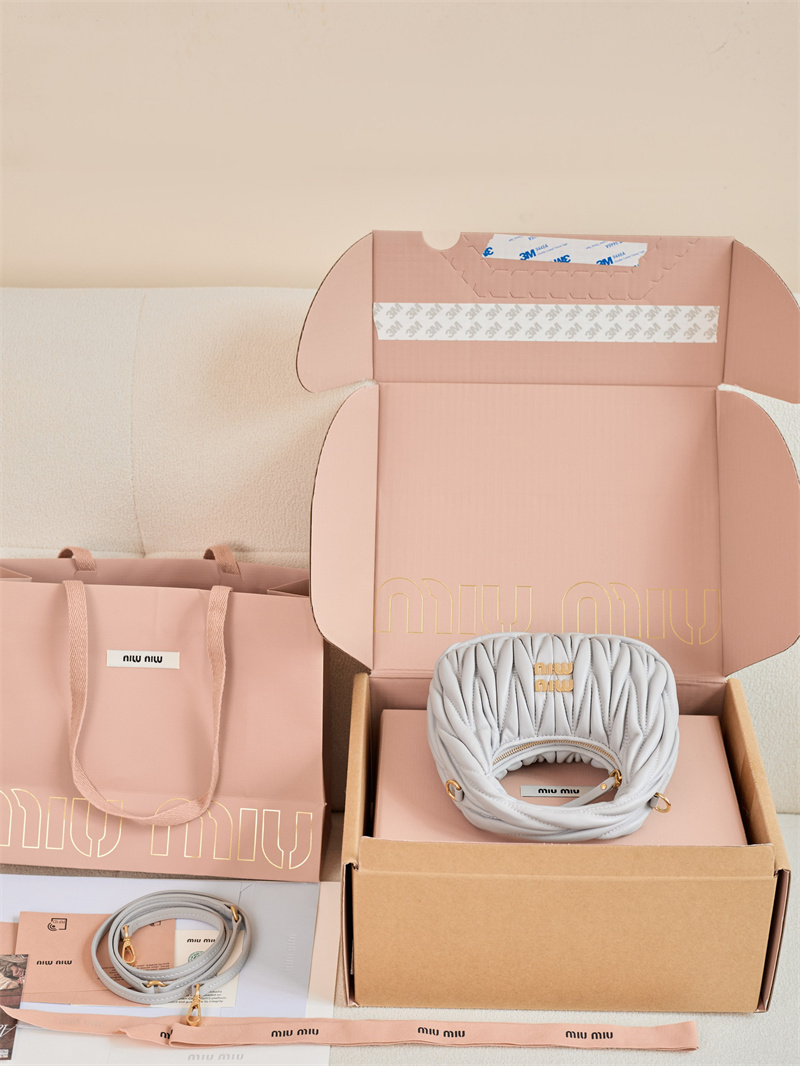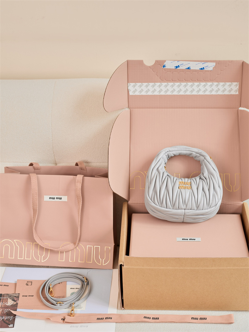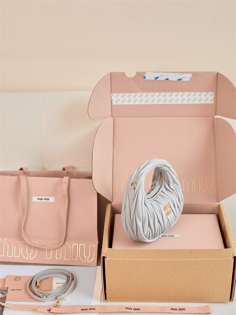 【팬더샵】미우미우 완더 마테라쎄 나파 가죽 호보 미니 백 그레이 5BP078