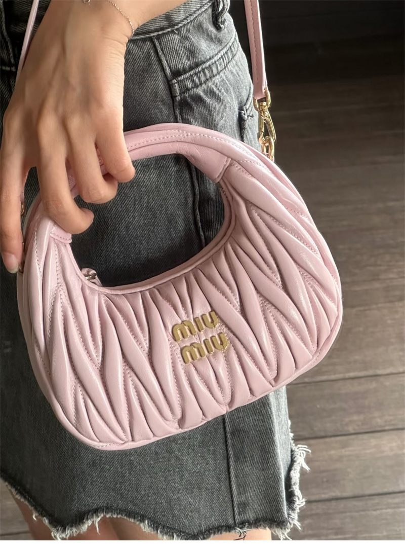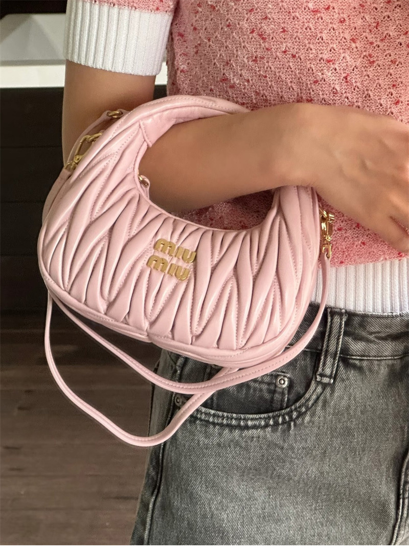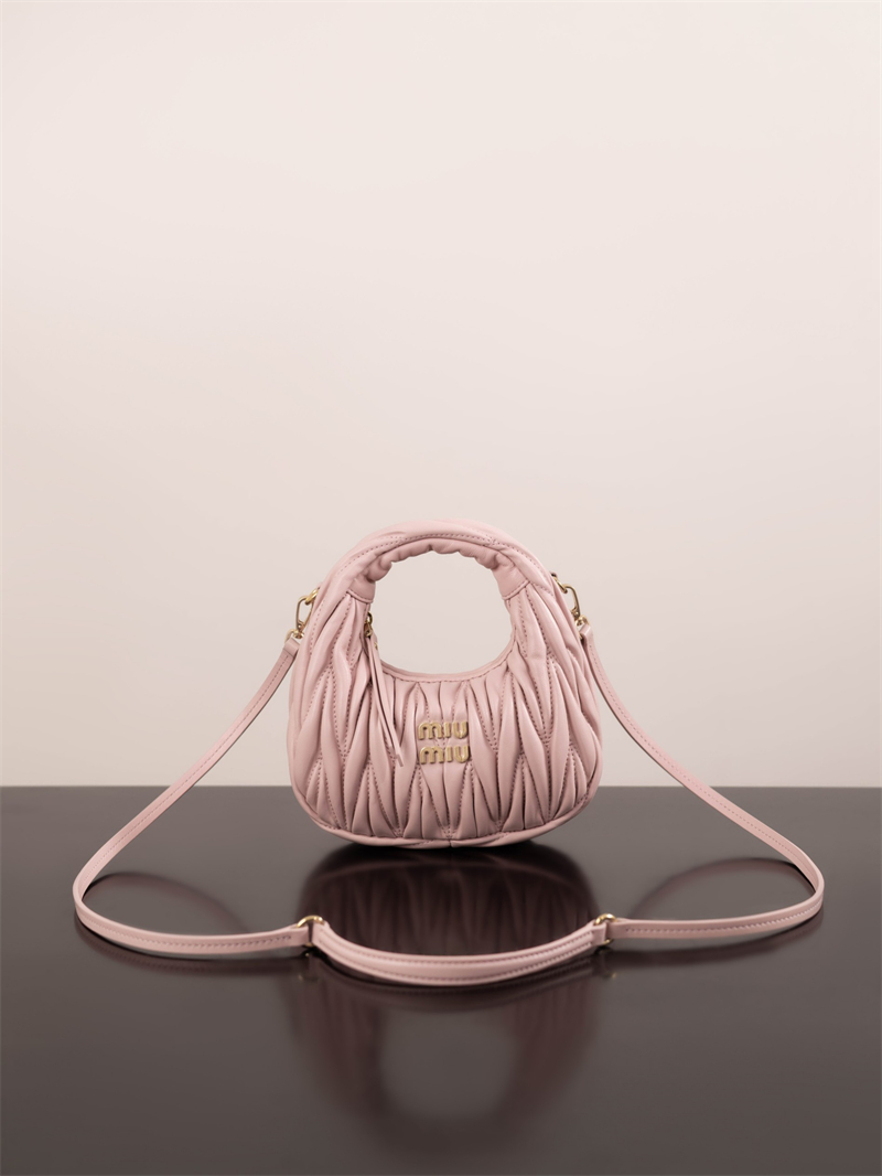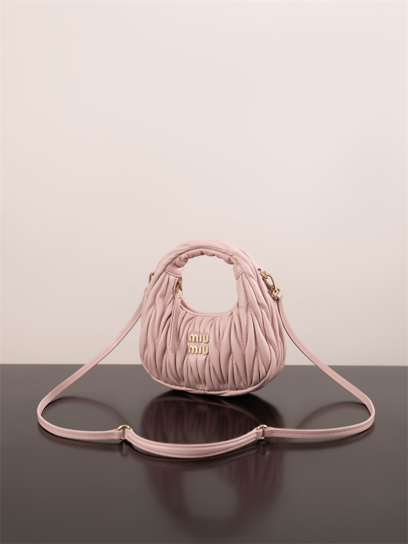 【팬더샵】미우미우 완더 마테라쎄 나파 가죽 호보 미니 백 핑크 5BP078