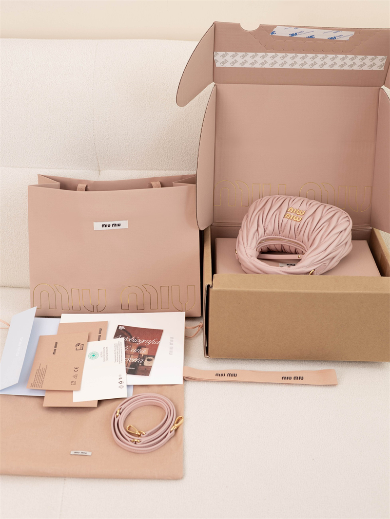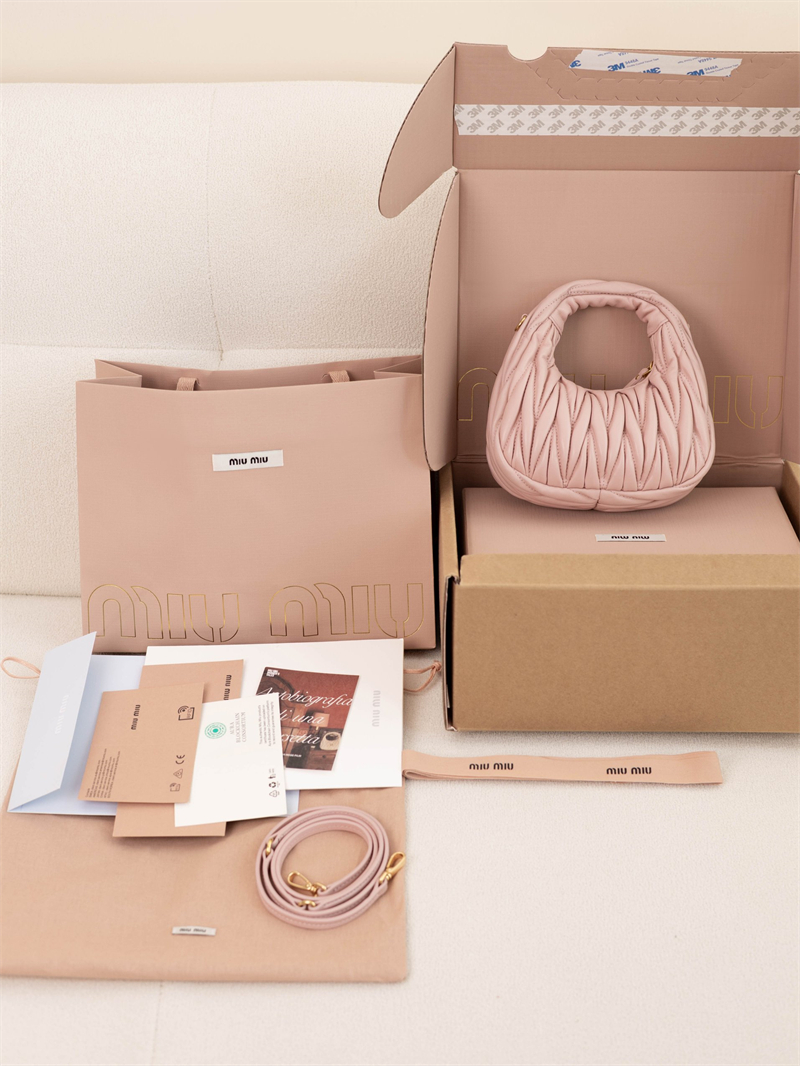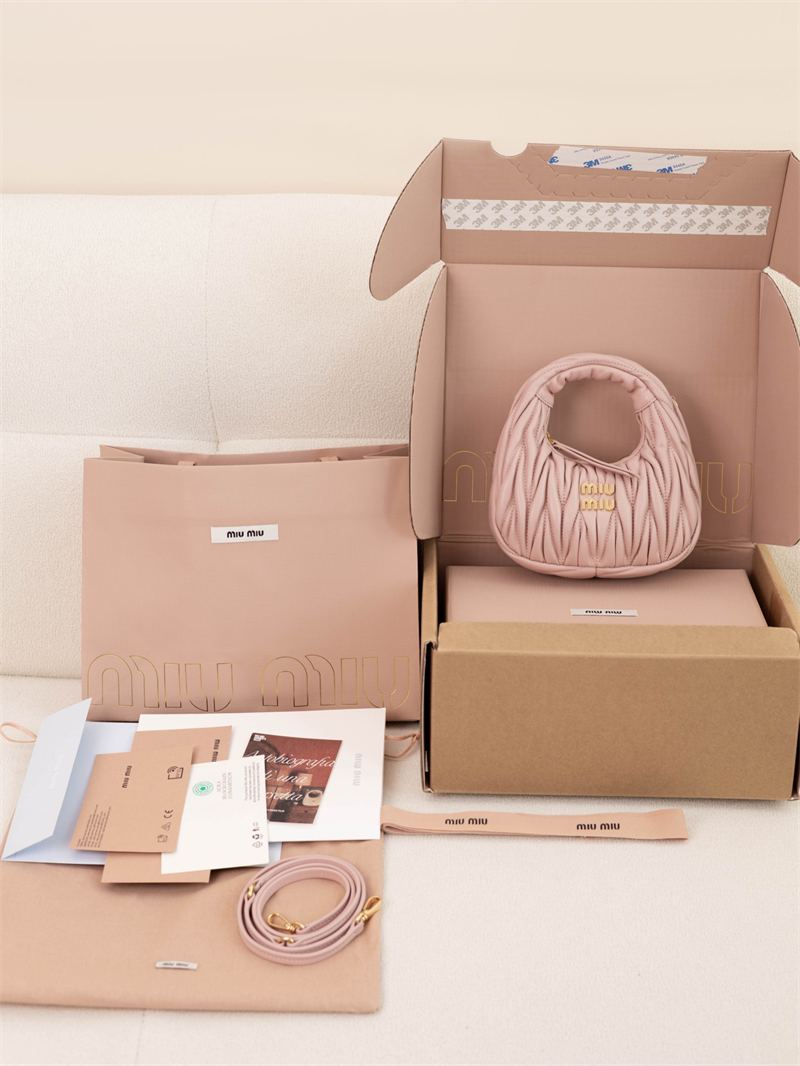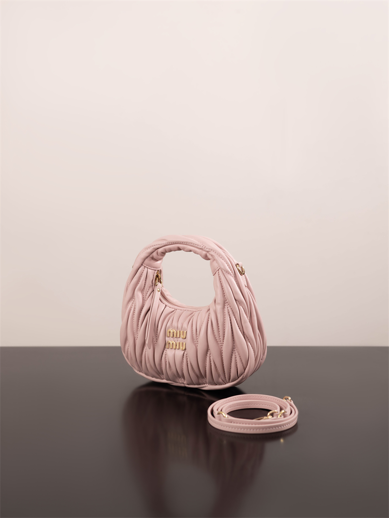 【팬더샵】미우미우 완더 마테라쎄 나파 가죽 호보 미니 백 핑크 5BP078