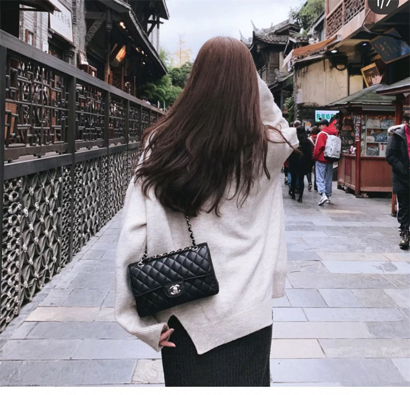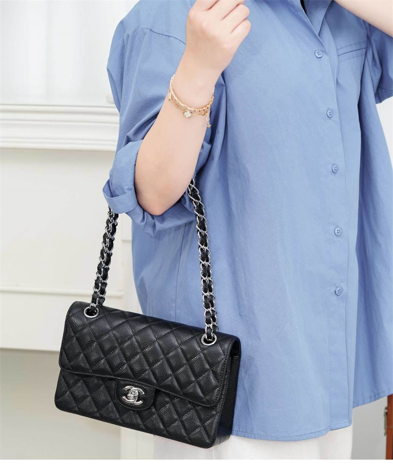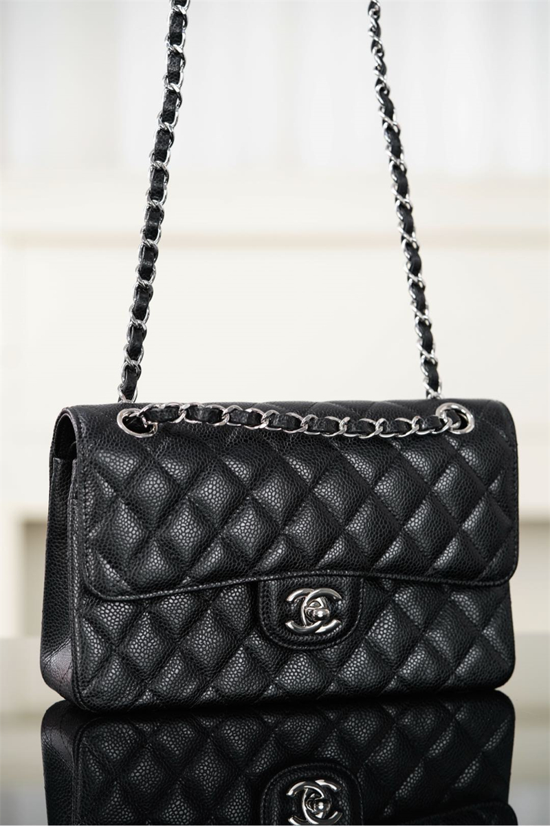 【팬더샵】샤넬 클래식 플랩백 캐비어 실버메탈 블랙