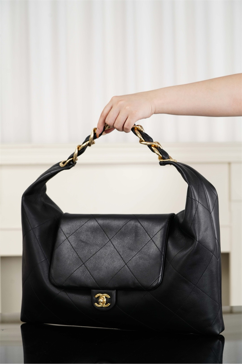 【팬더샵】샤넬 25k 맥시 호보 백 스몰 골드 메탈 블랙