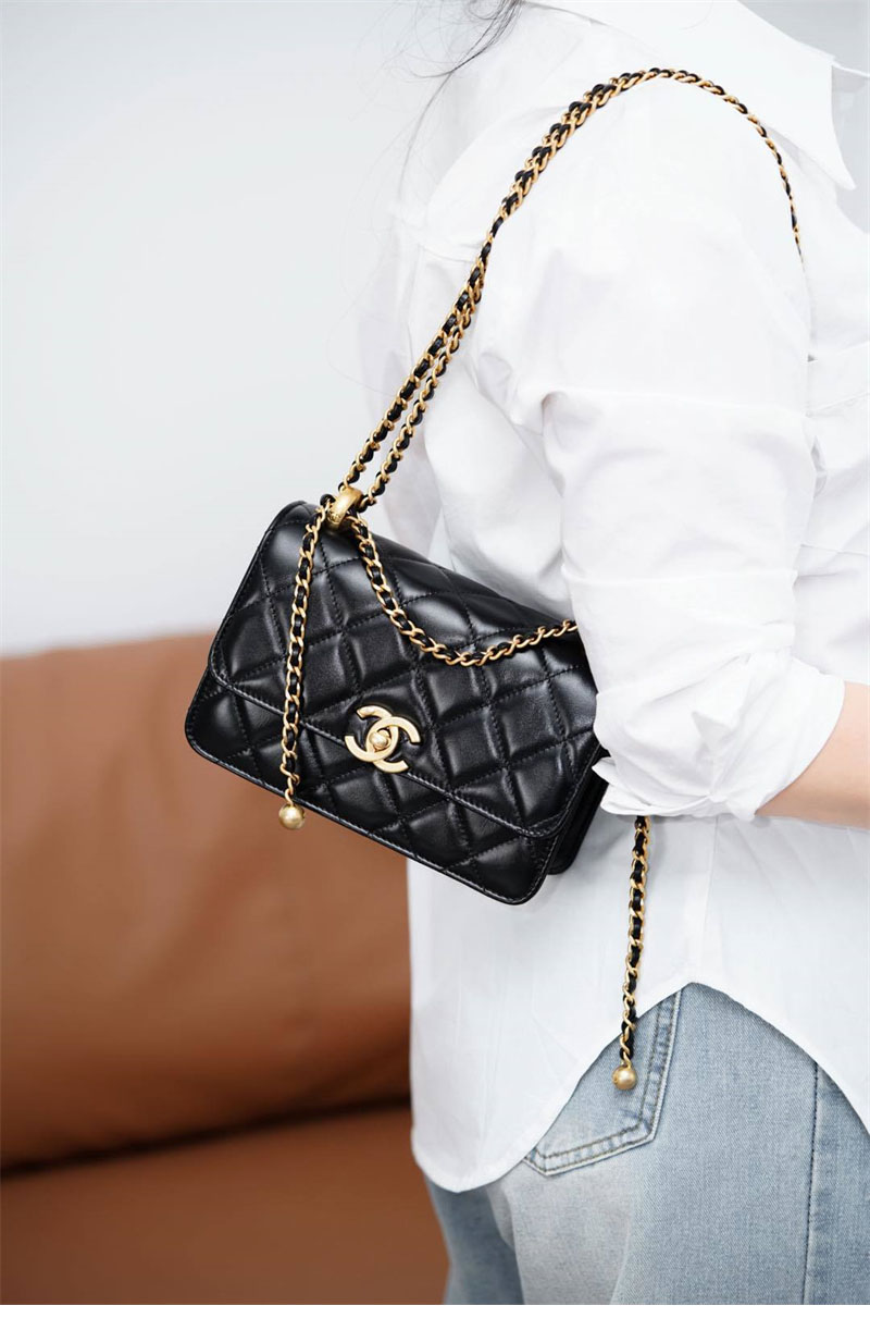 【팬더샵】샤넬 25S 미니 체인 플랩백 골드메탈 블랙