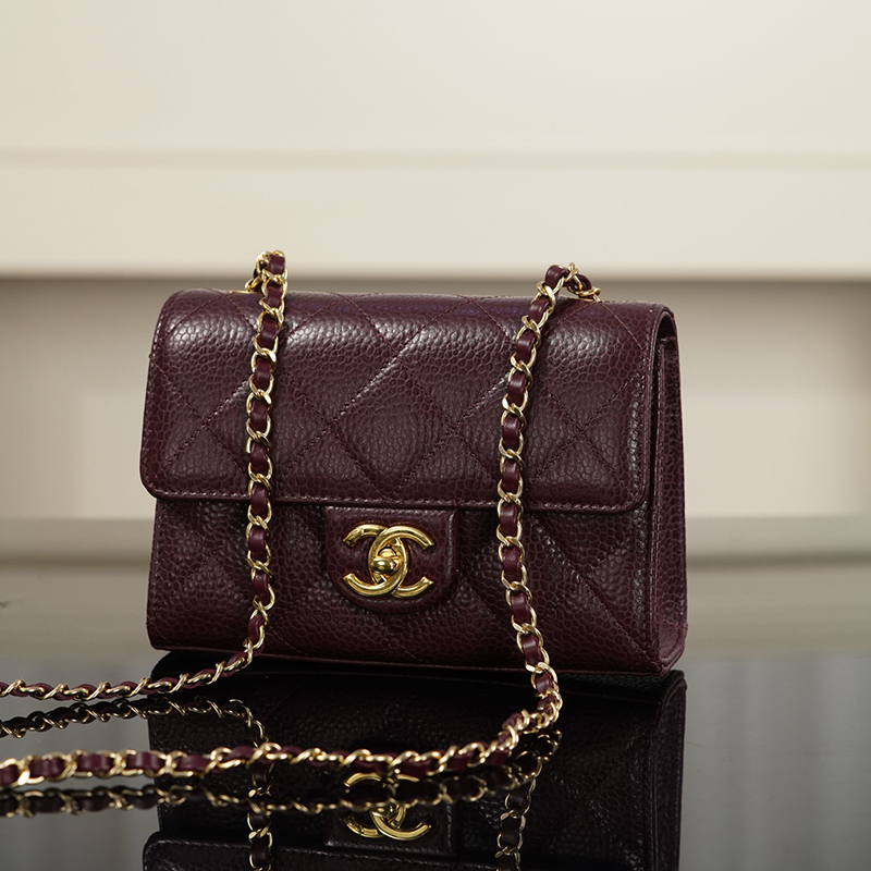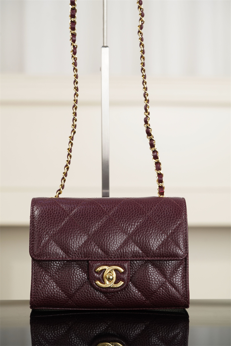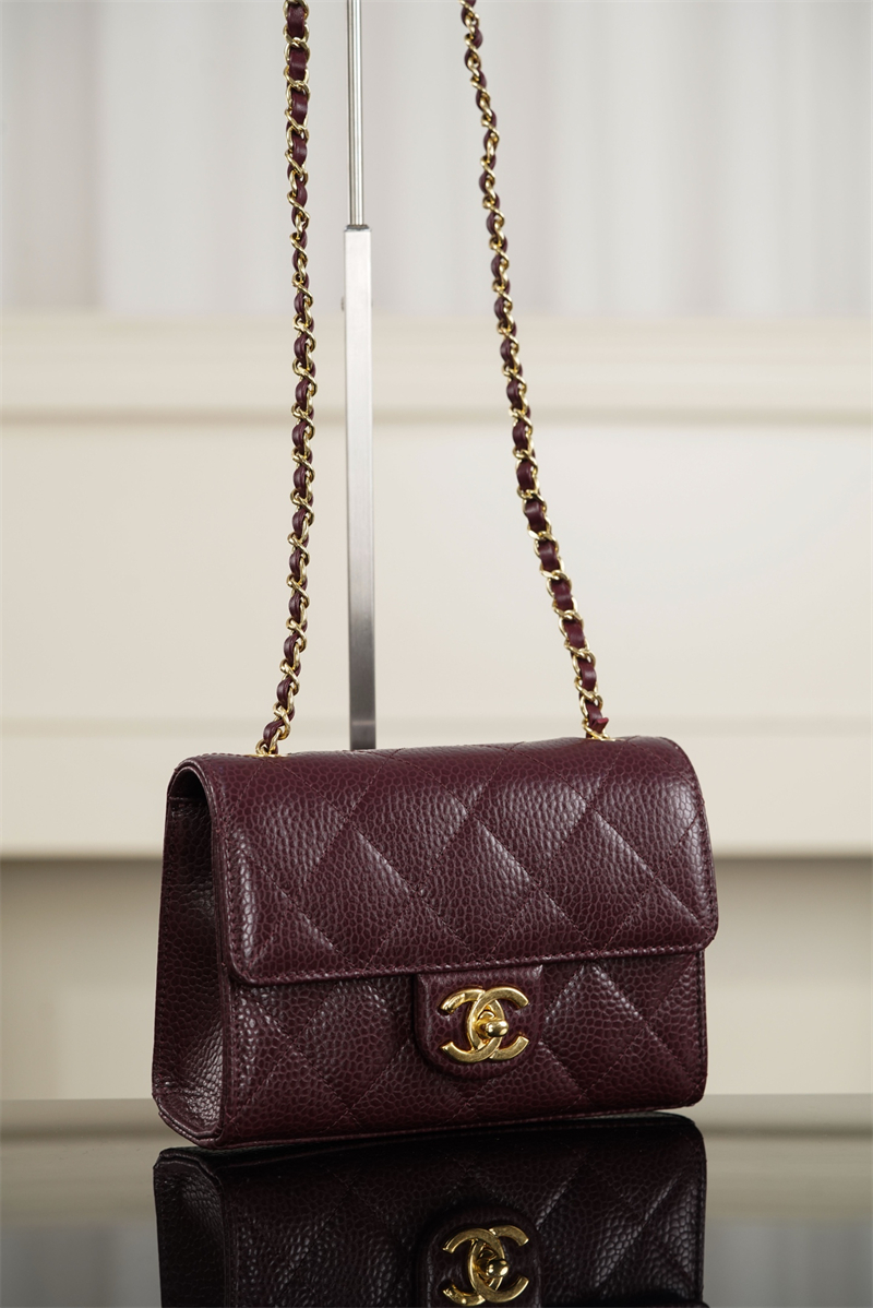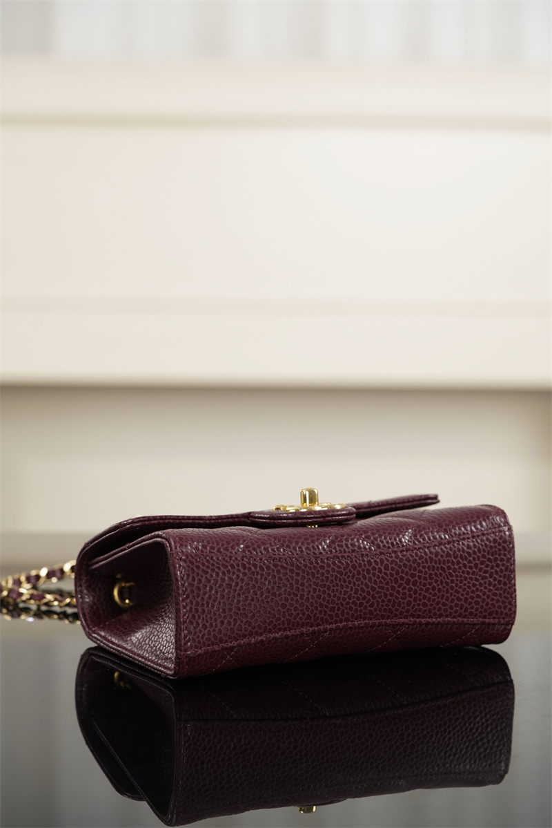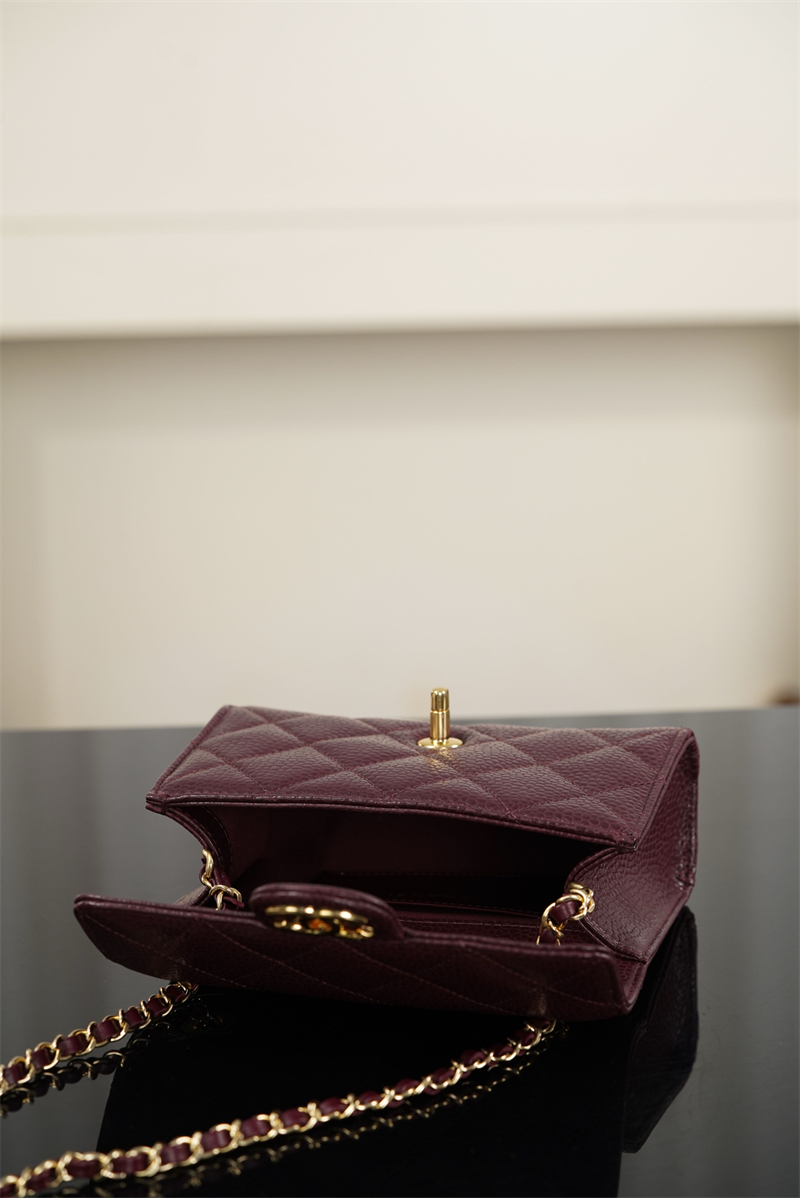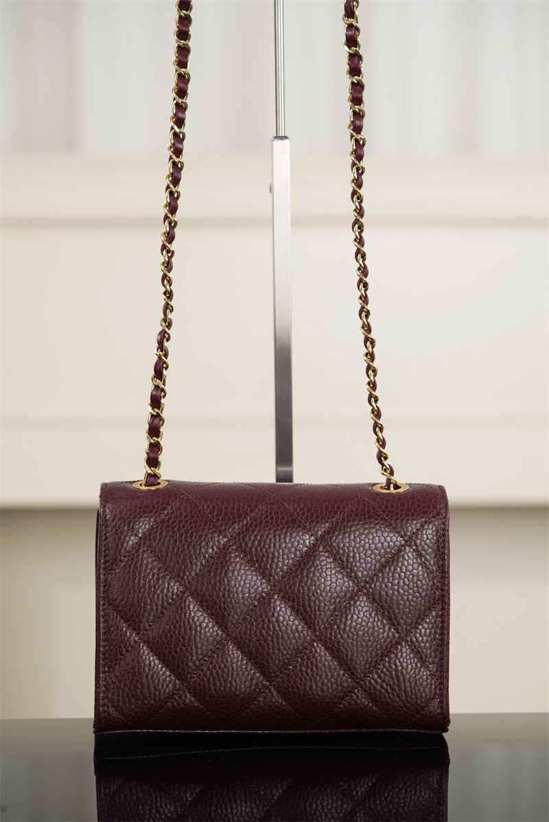 【팬더샵】샤넬 26C 미니 클래식 플랩 버건디 그레인드 카프스킨 골드 메탈