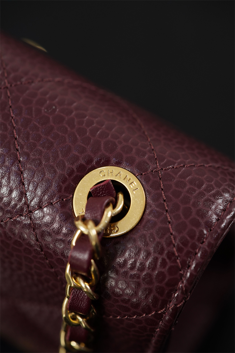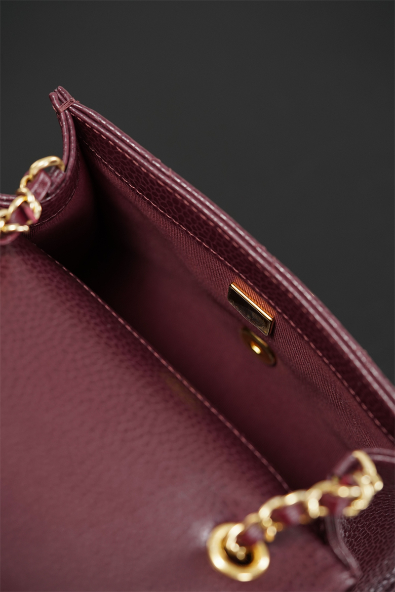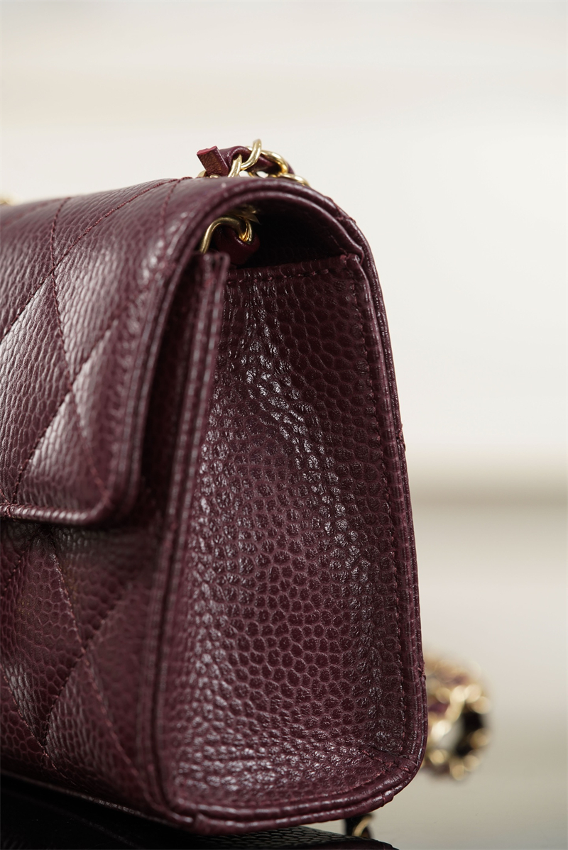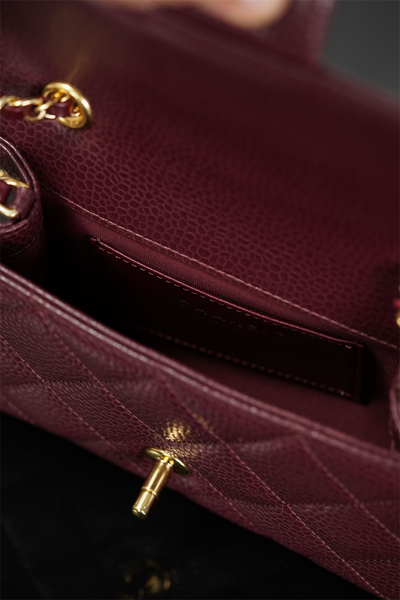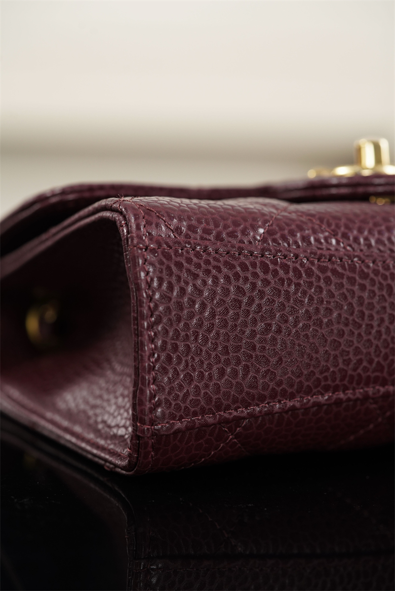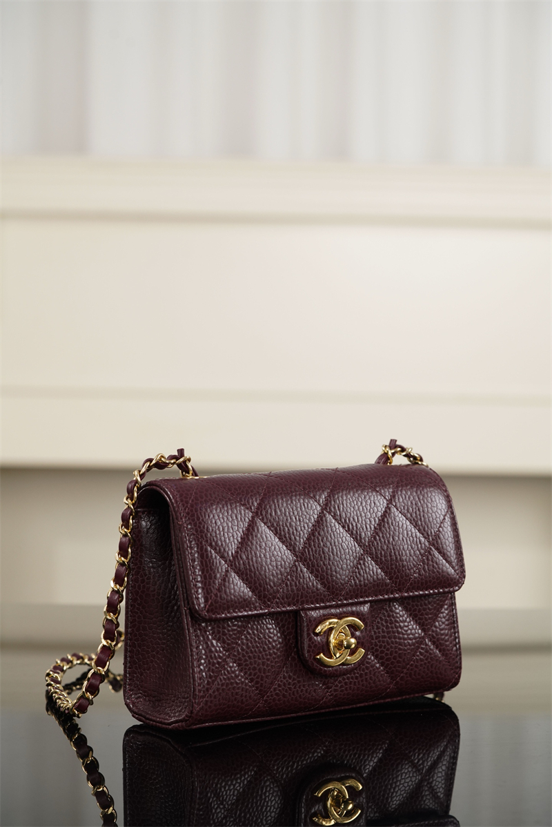 【팬더샵】샤넬 26C 미니 클래식 플랩 버건디 그레인드 카프스킨 골드 메탈