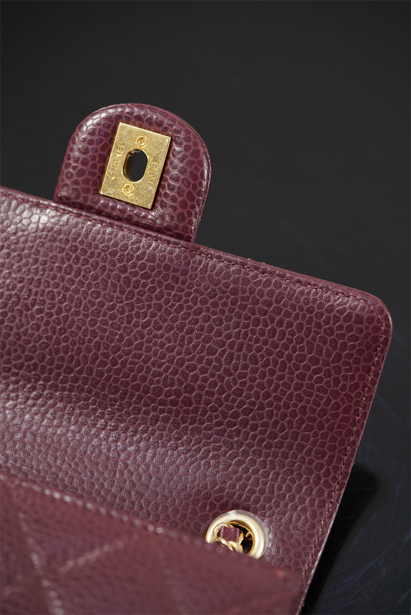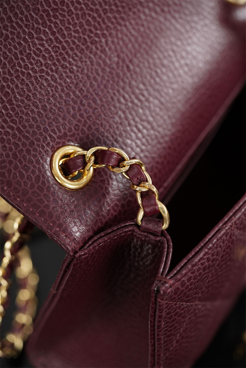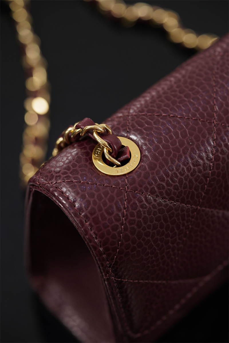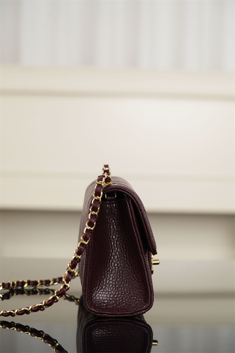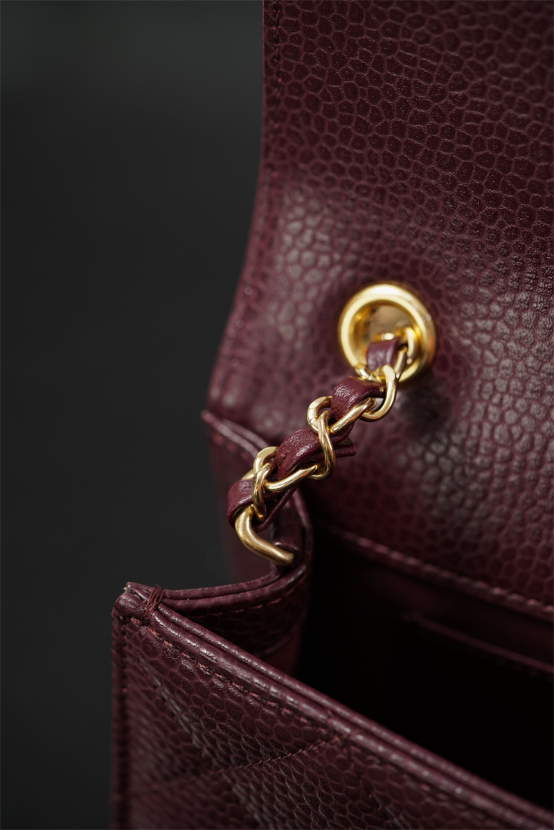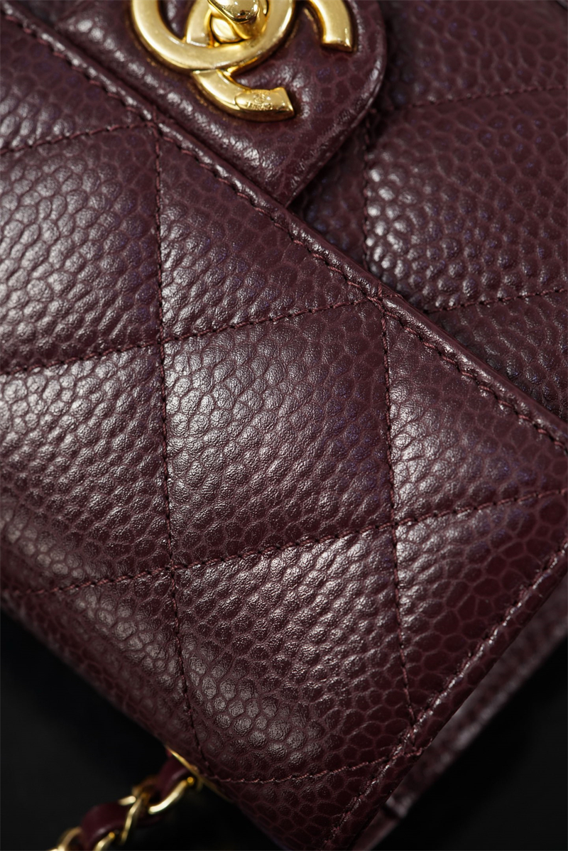 【팬더샵】샤넬 26C 미니 클래식 플랩 버건디 그레인드 카프스킨 골드 메탈
