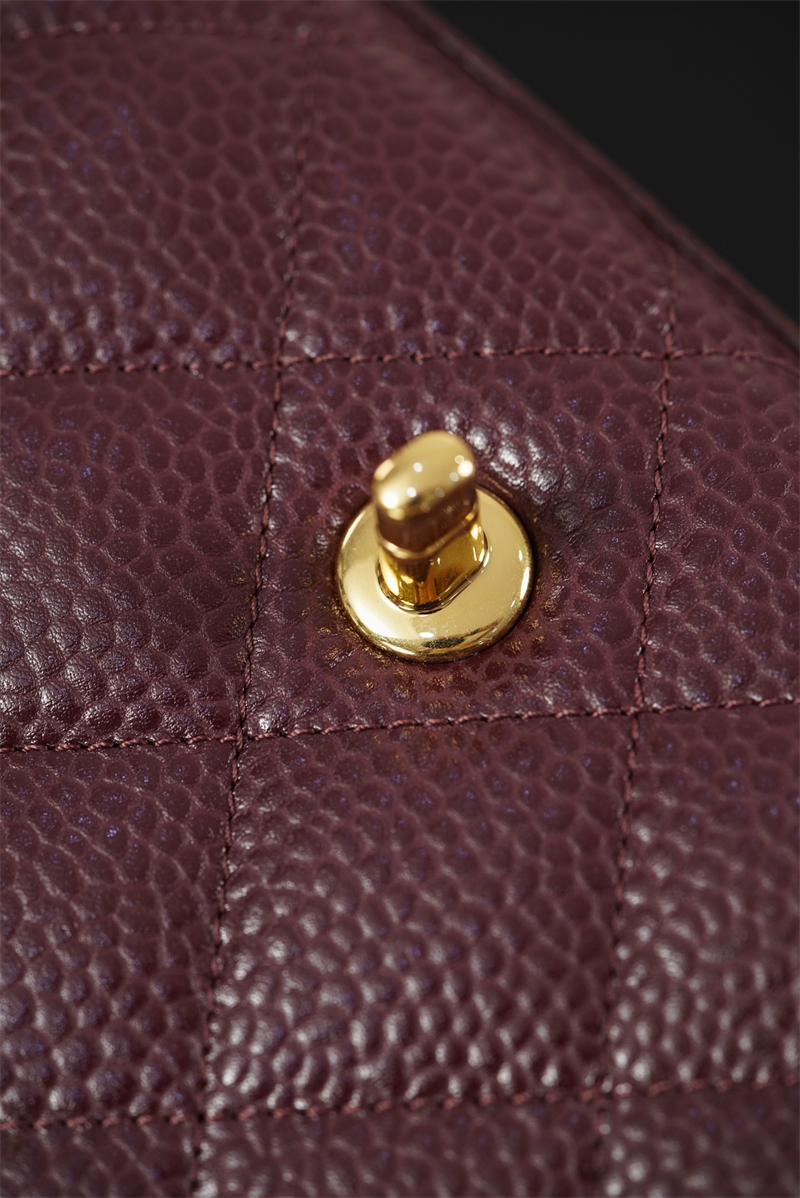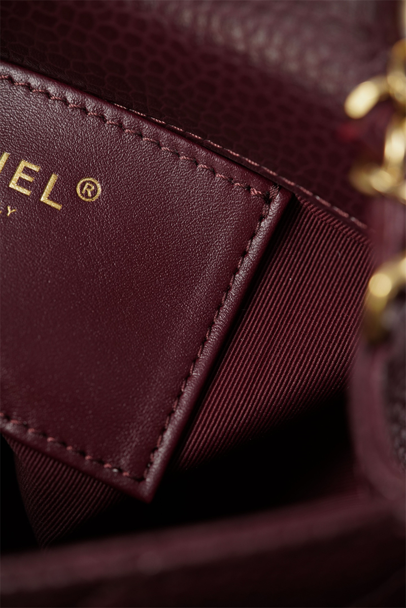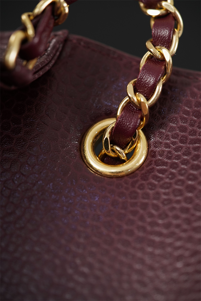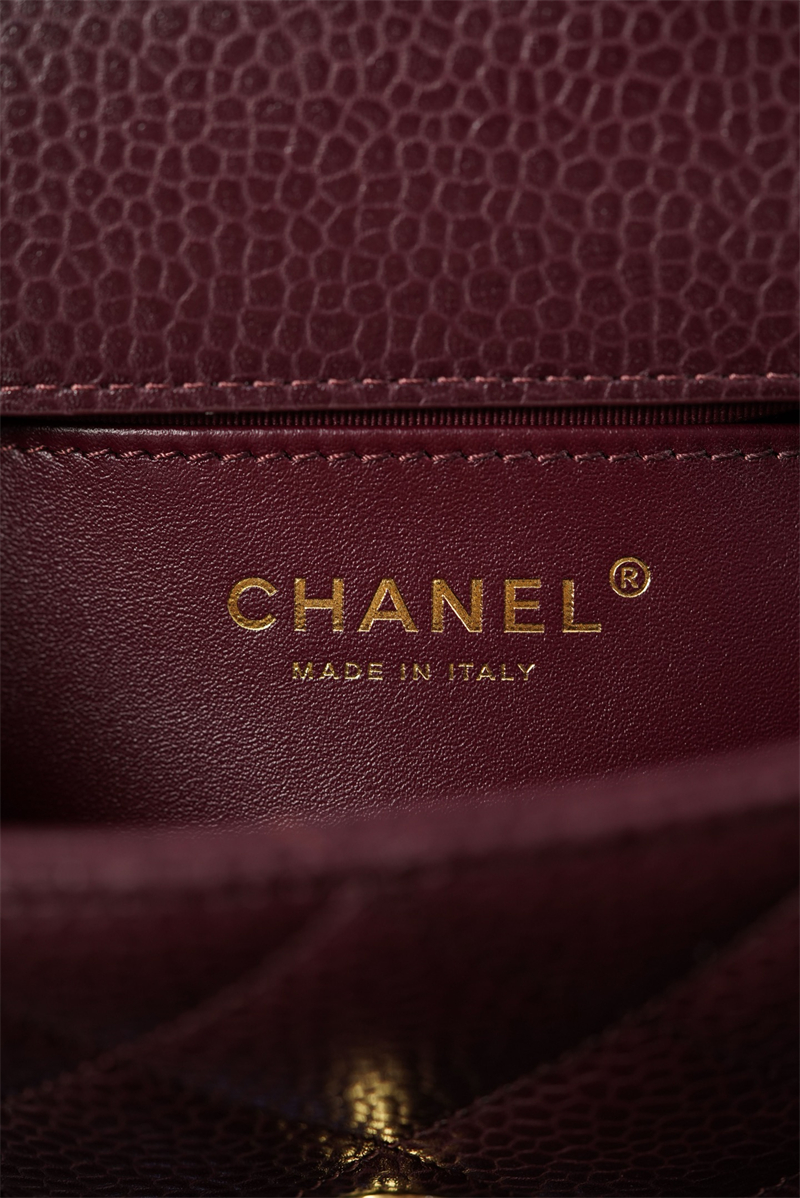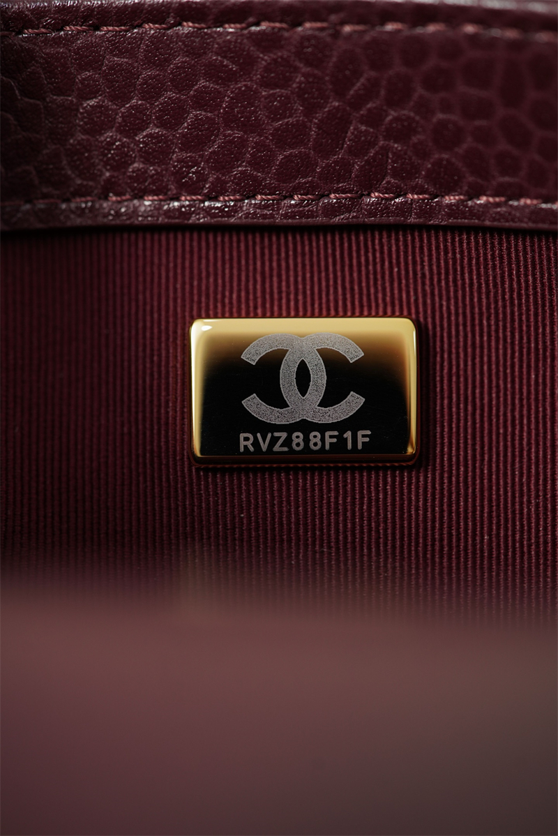 【팬더샵】샤넬 26C 미니 클래식 플랩 버건디 그레인드 카프스킨 골드 메탈