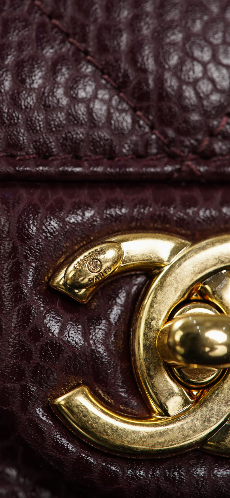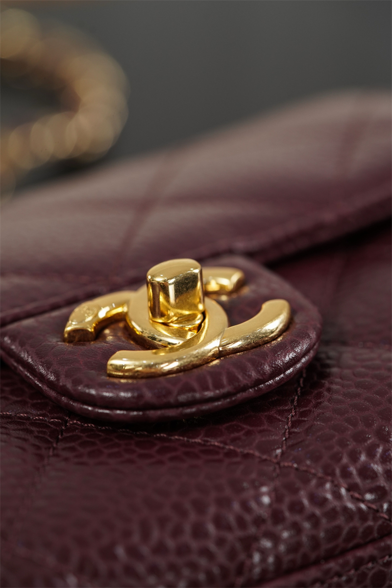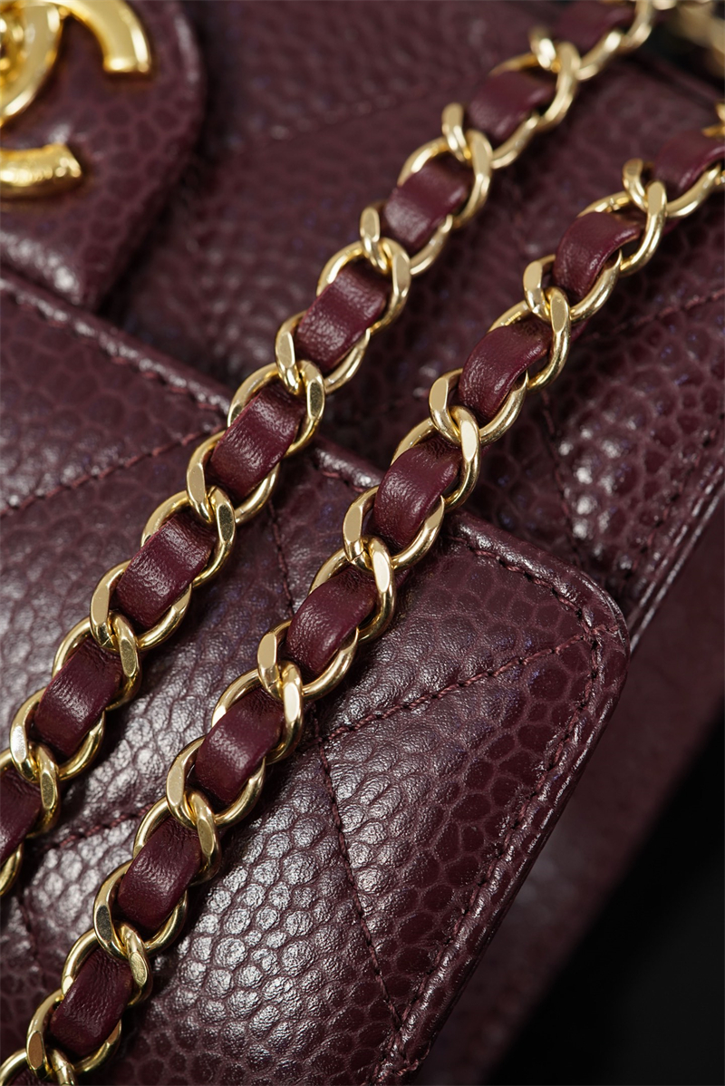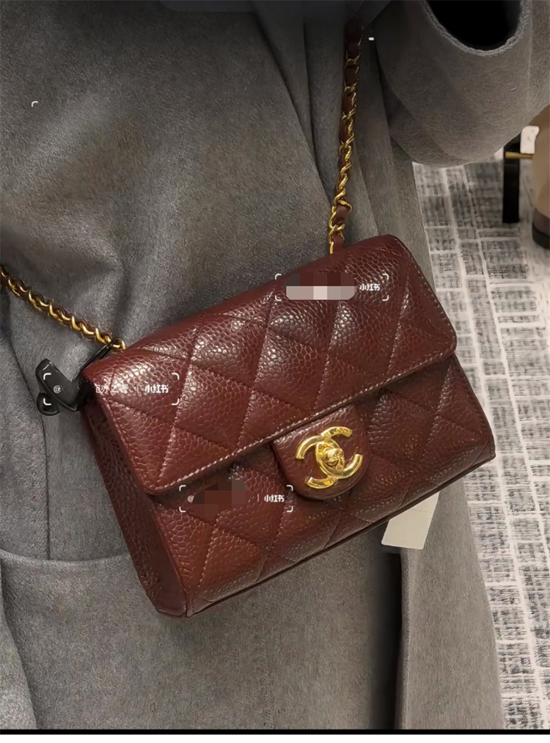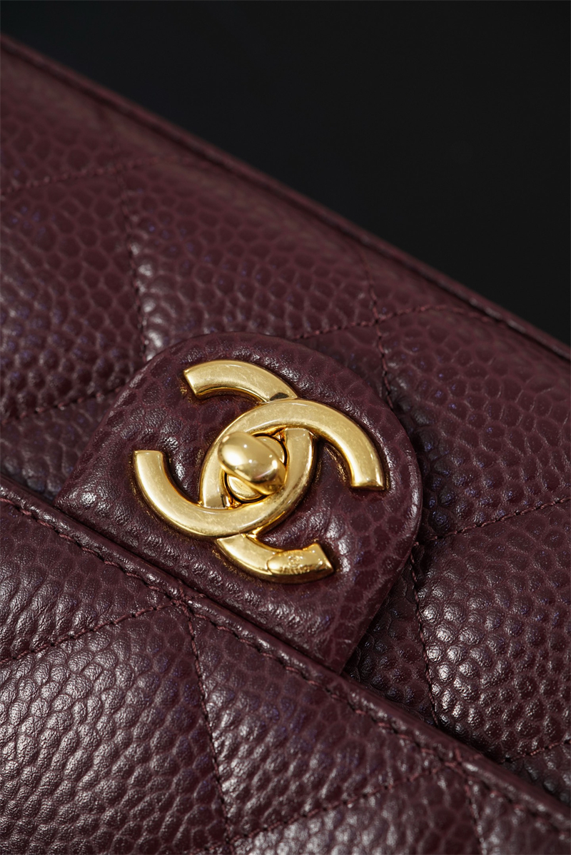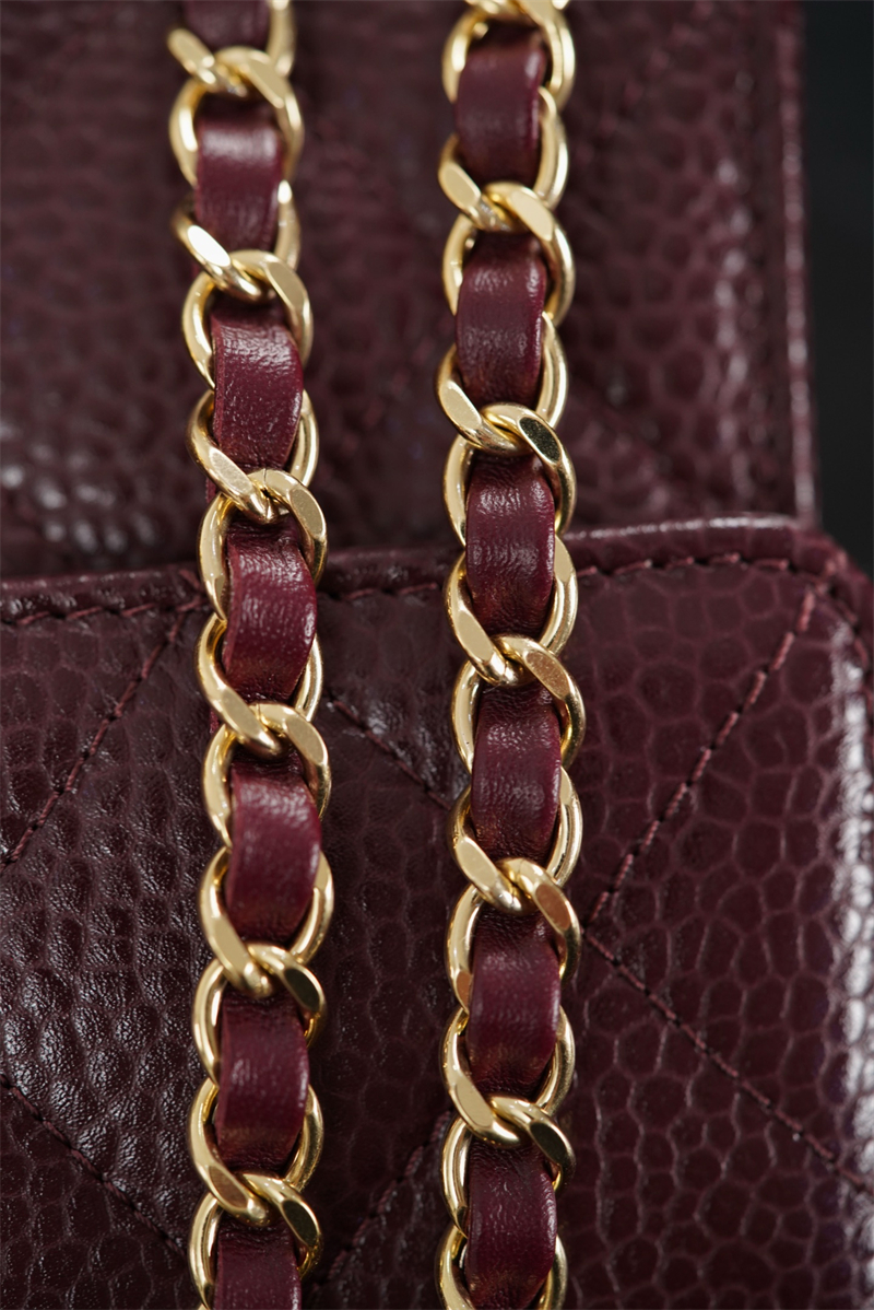 【팬더샵】샤넬 26C 미니 클래식 플랩 버건디 그레인드 카프스킨 골드 메탈
