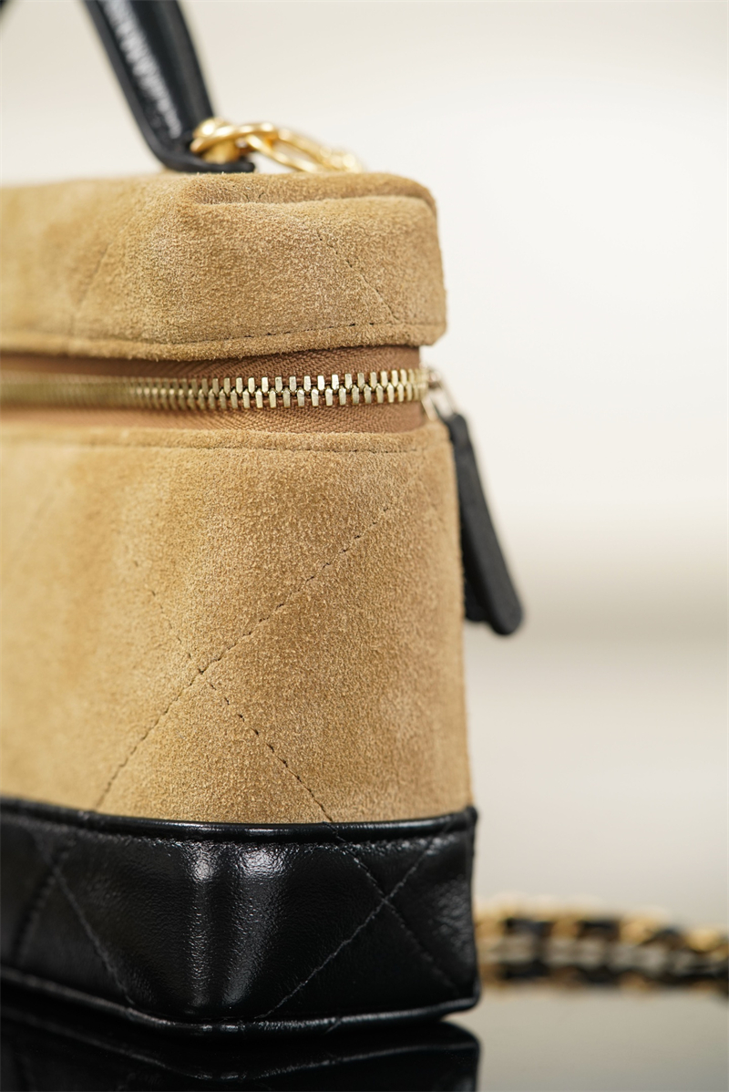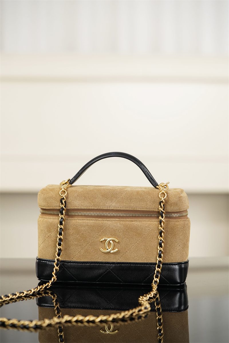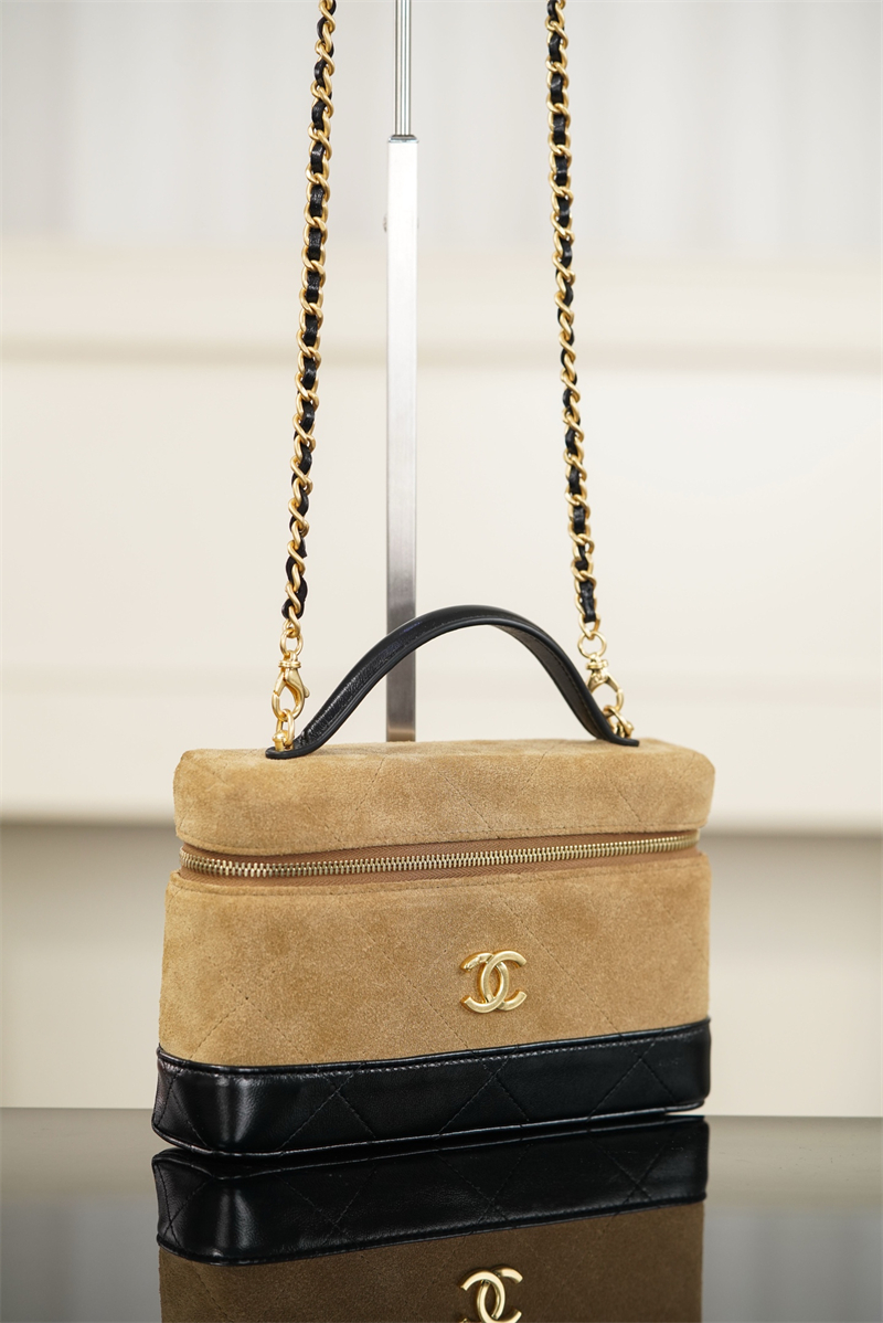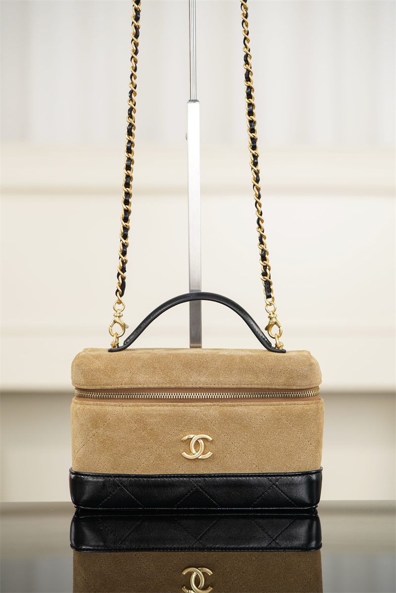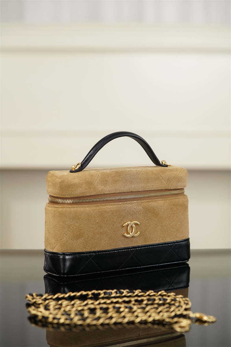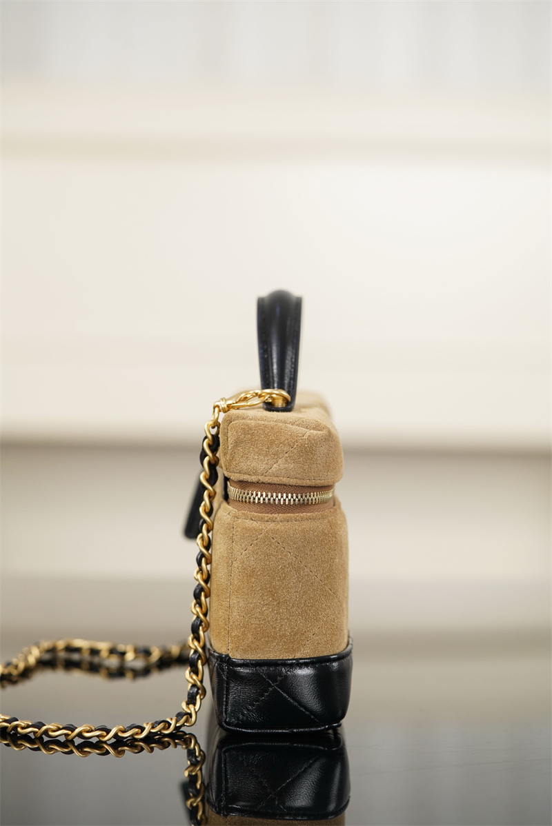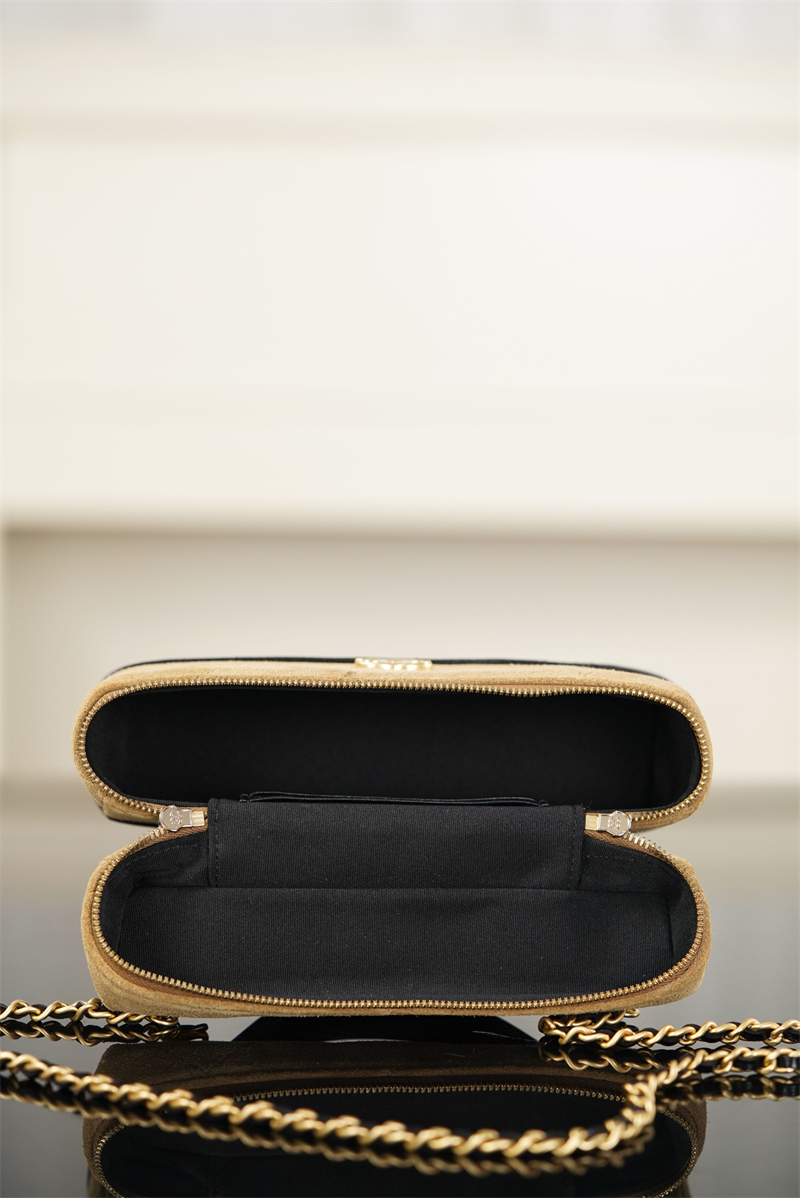 【팬더샵】샤넬 26SS 체인 탑핸들 코스메탁 케이스 크로스백 베이지 스웨이드 카프스킨 골드 메탈