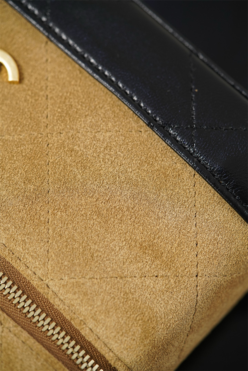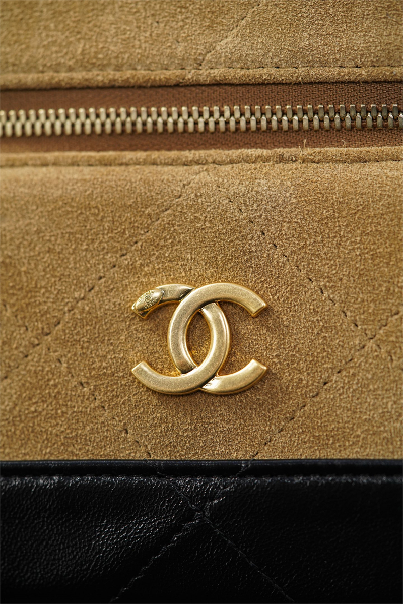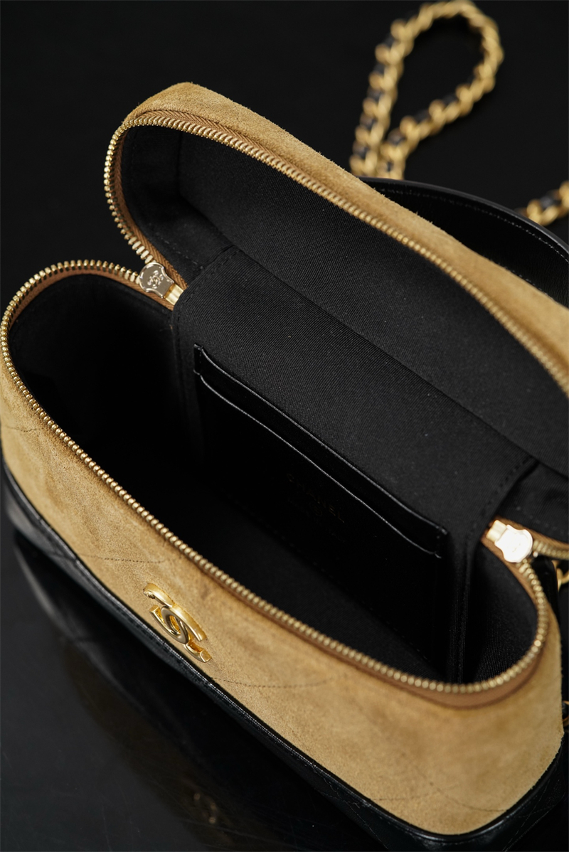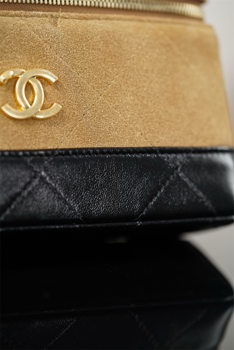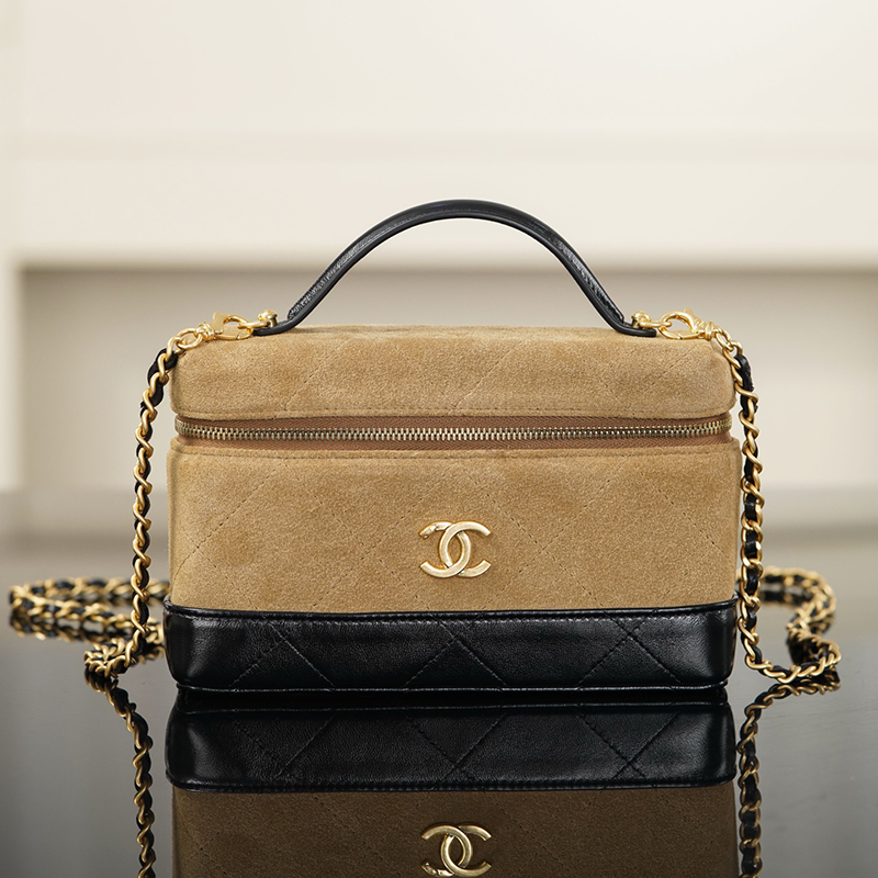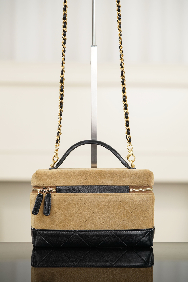 【팬더샵】샤넬 26SS 체인 탑핸들 코스메탁 케이스 크로스백 베이지 스웨이드 카프스킨 골드 메탈