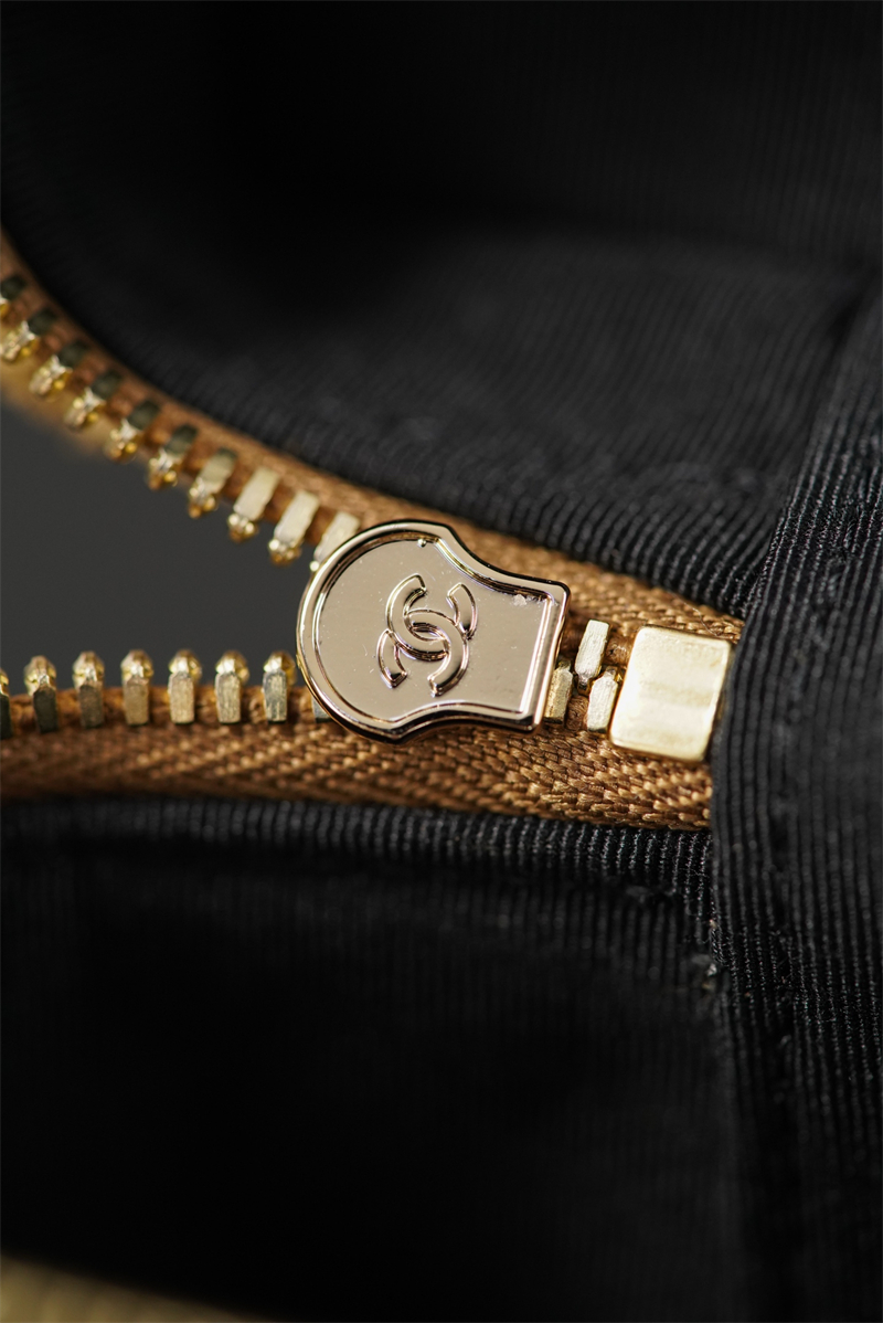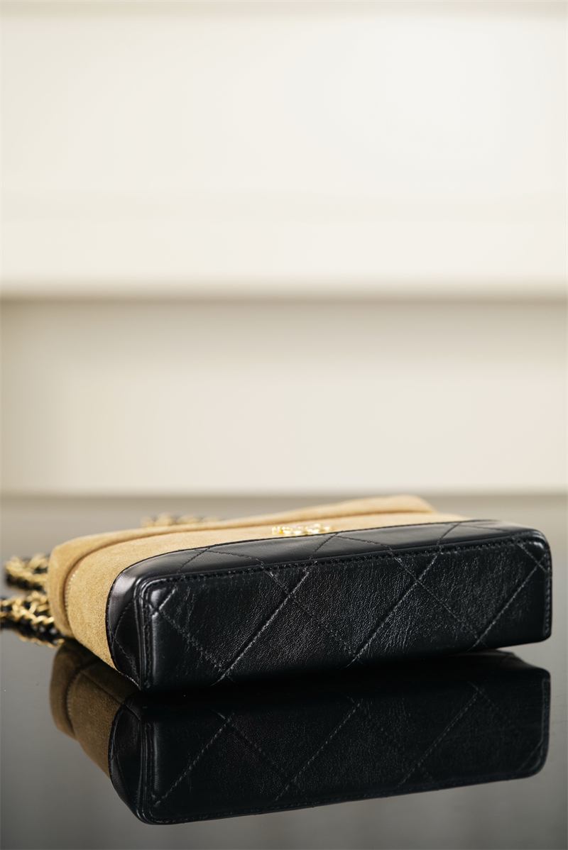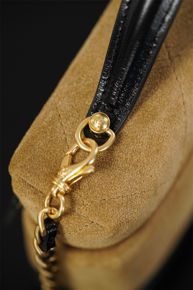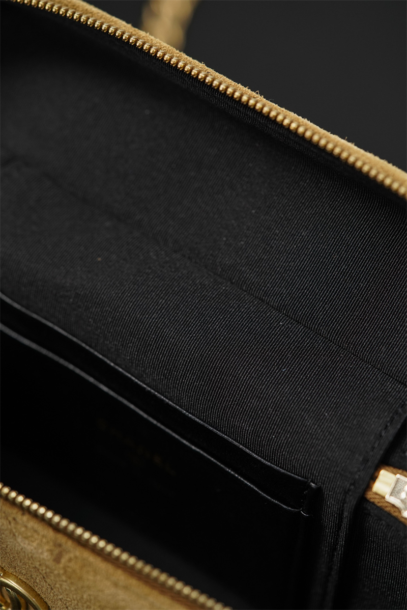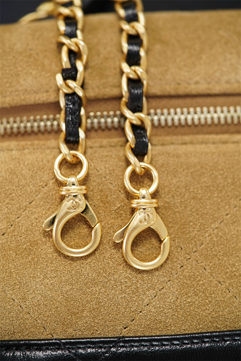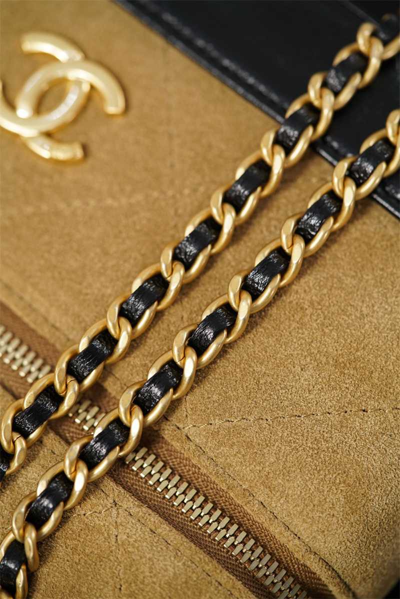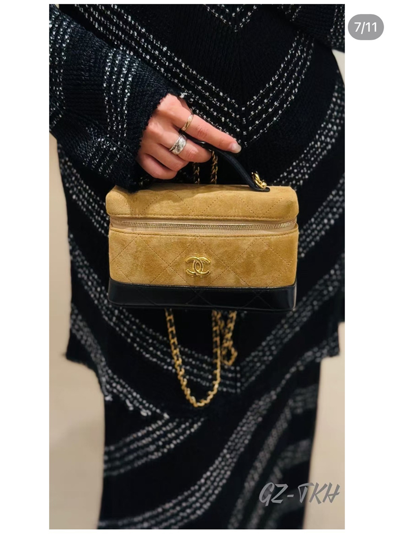 【팬더샵】샤넬 26SS 체인 탑핸들 코스메탁 케이스 크로스백 베이지 스웨이드 카프스킨 골드 메탈