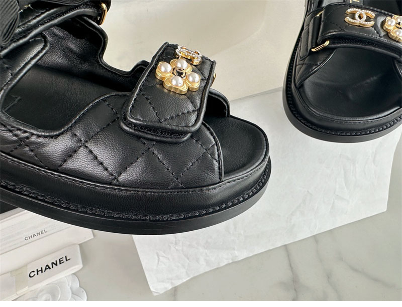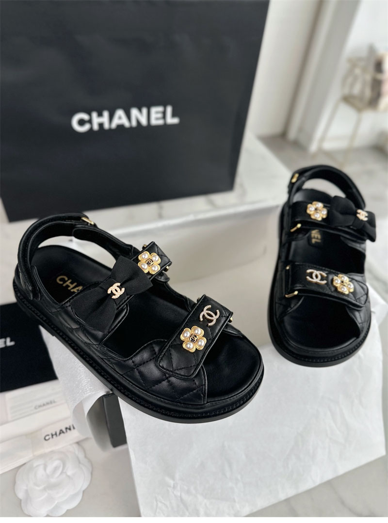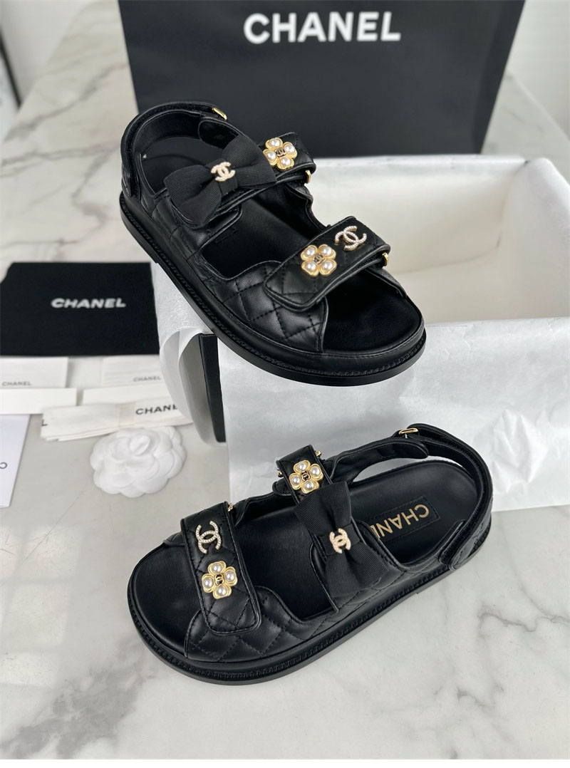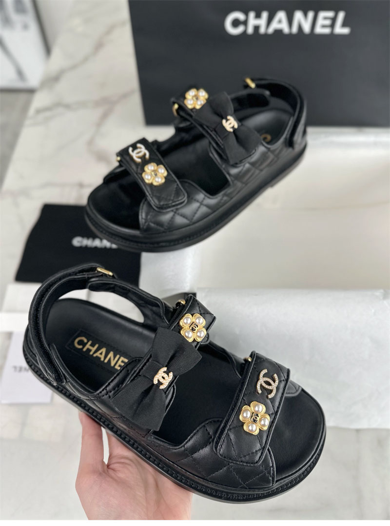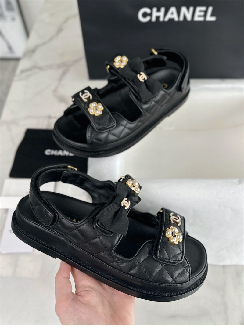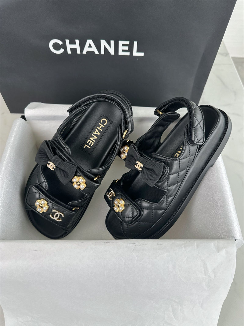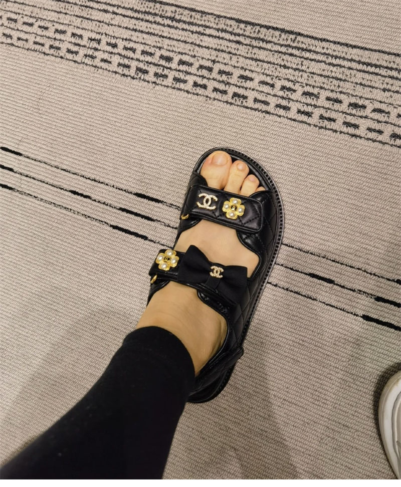 【Happy】샤넬 벨크로 진주 리본 샌들(터보)