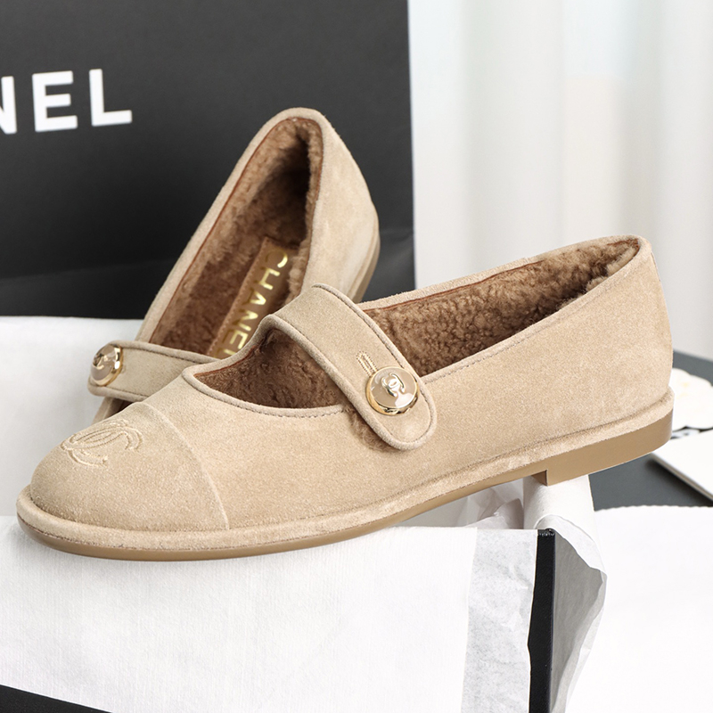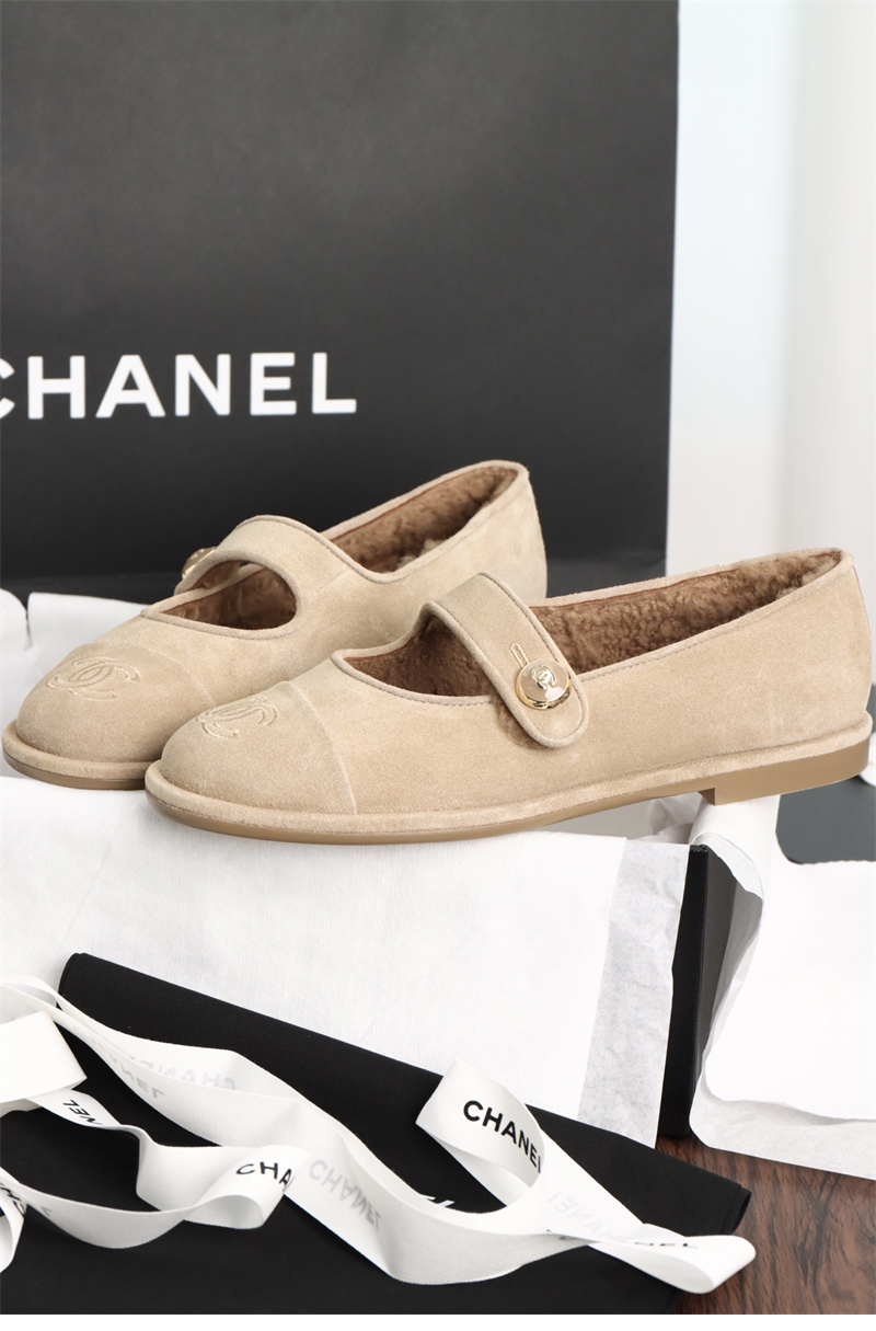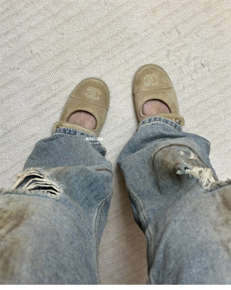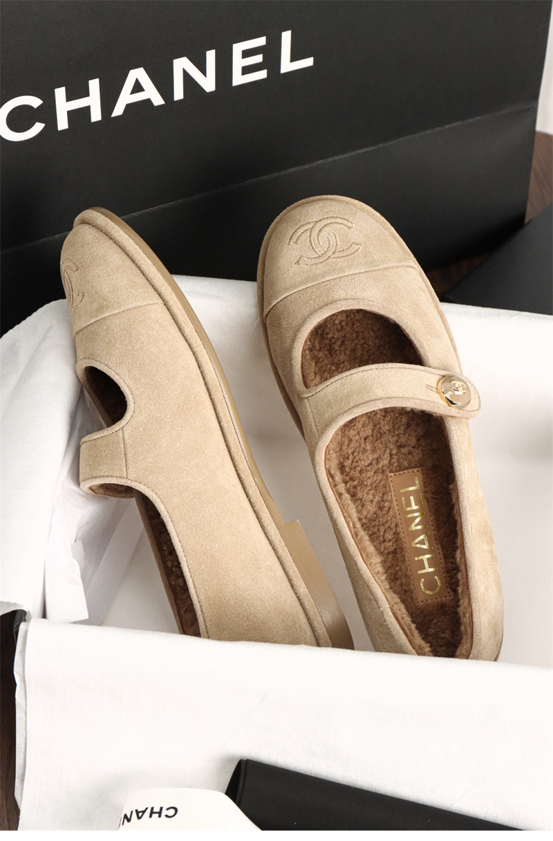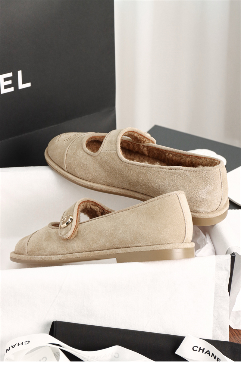 【HAPPY】샤넬 스웨이드 시어링 메리제일 플랫 슈즈(TJ공장)