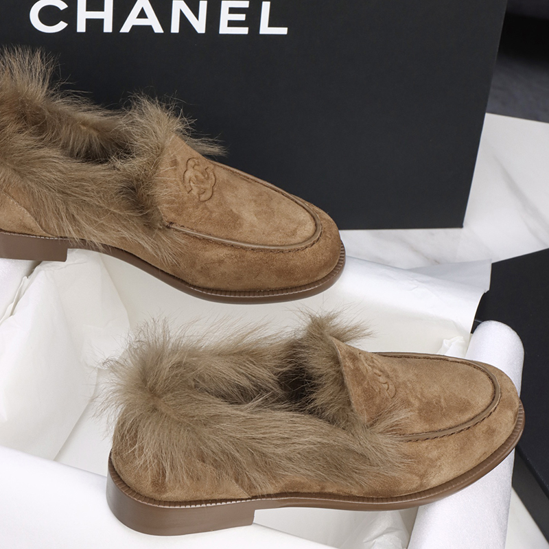 【Happy】샤넬 25N CC 로고 스웨이드 키드스킨 시어링 로퍼(터보)