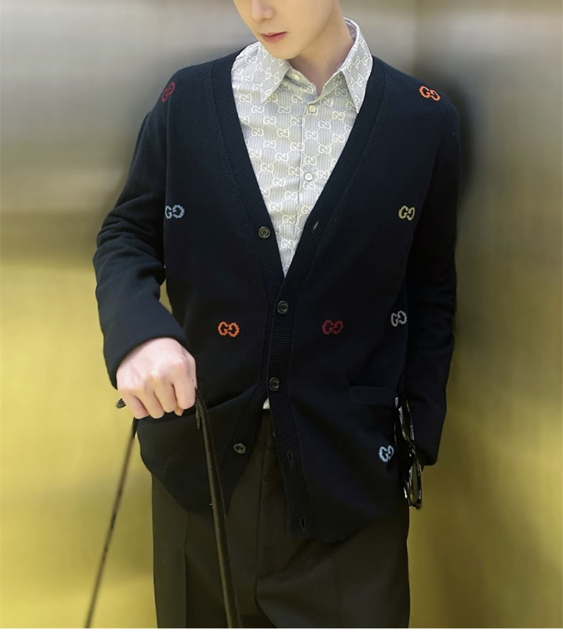 【TJ공장】구찌 인따르시아 모티프 멀티컬러 캐시미어 가디건 (터보)