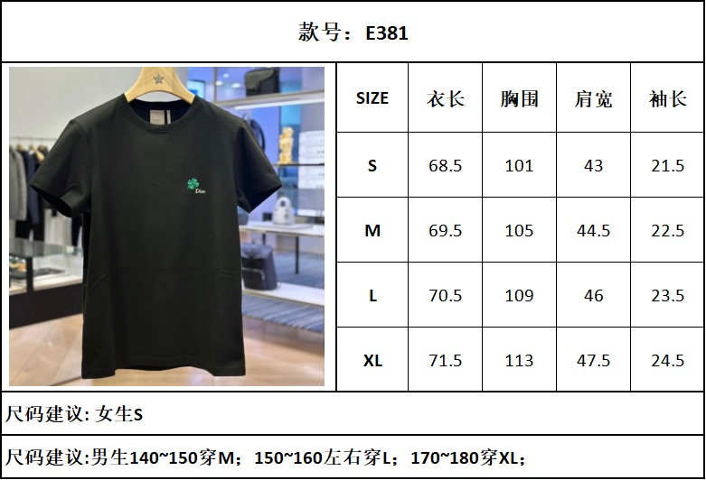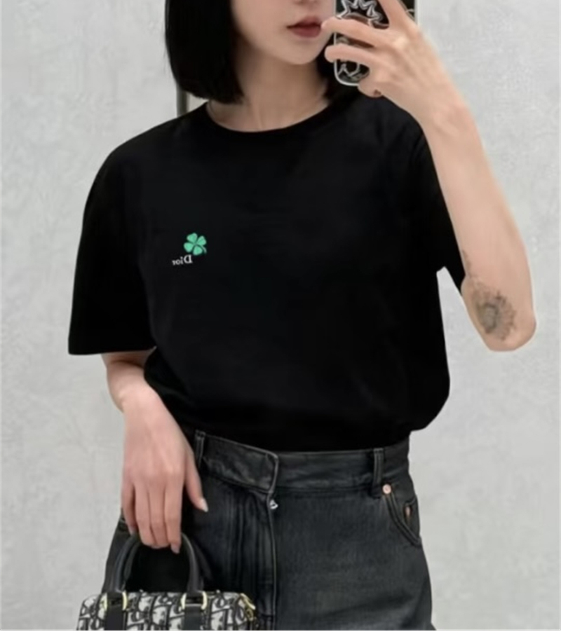 【TJ공장】디올 클로버 자수 코튼 반팔 티셔츠 (터보)