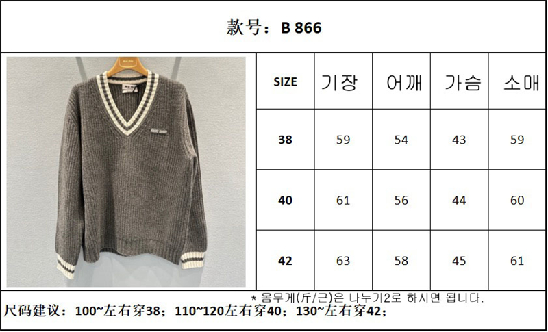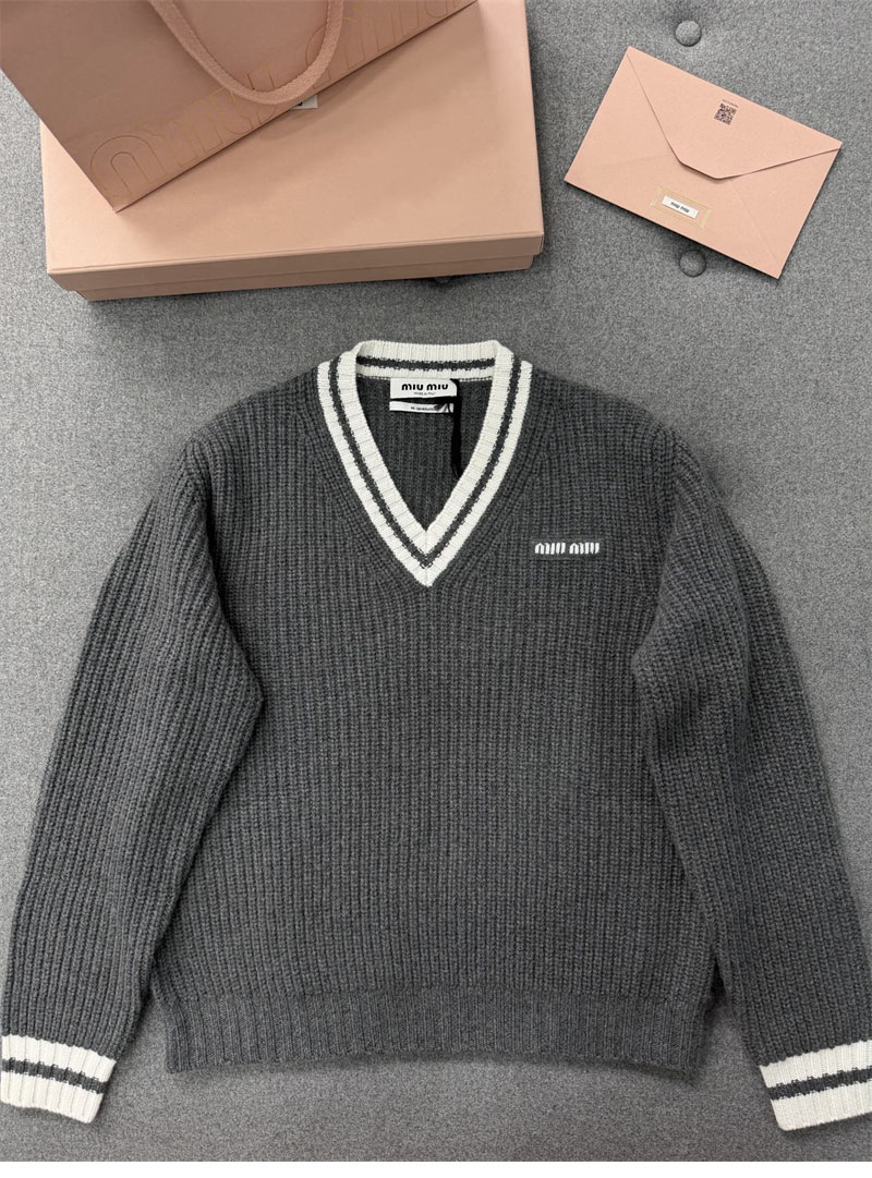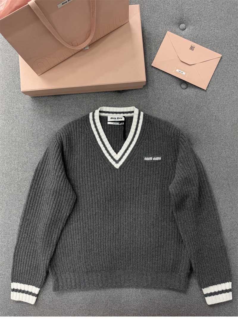 【TJ공장】미우미우 립 조직 니트 울 캐시미어 스웨터(터보)