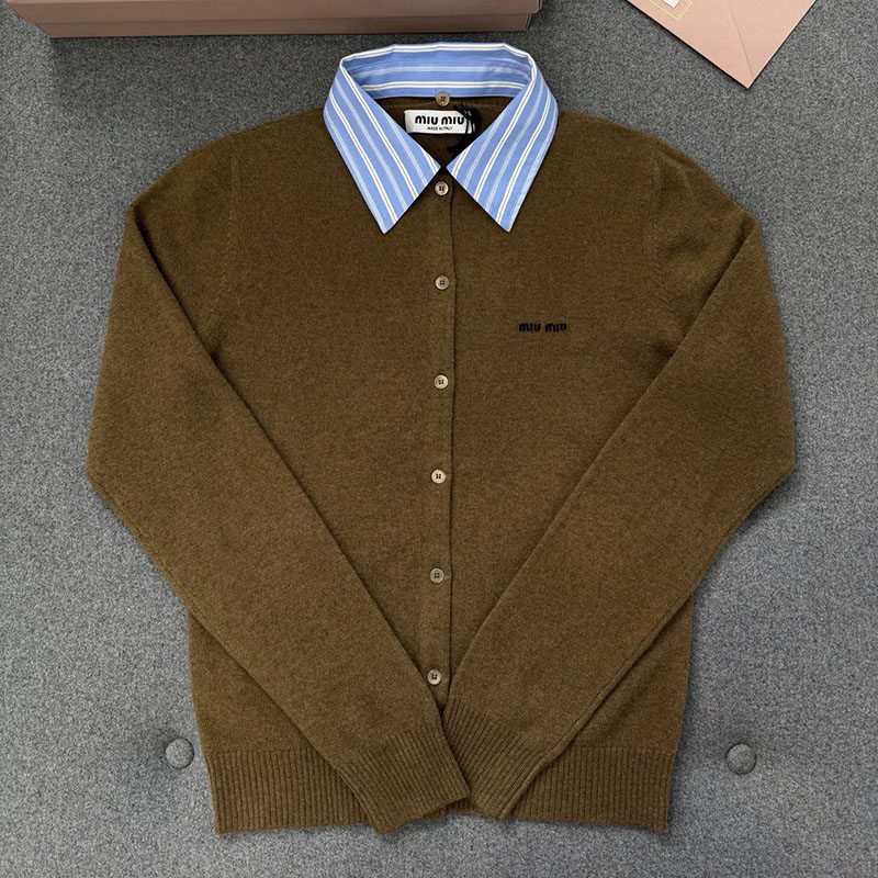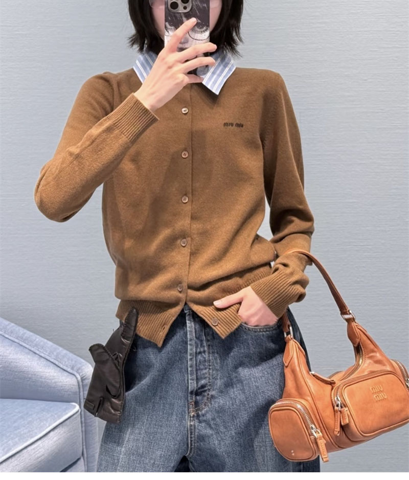 【TJ공장】미우미우 카라 엠벨리시드 캐시미어 가디건(터보)