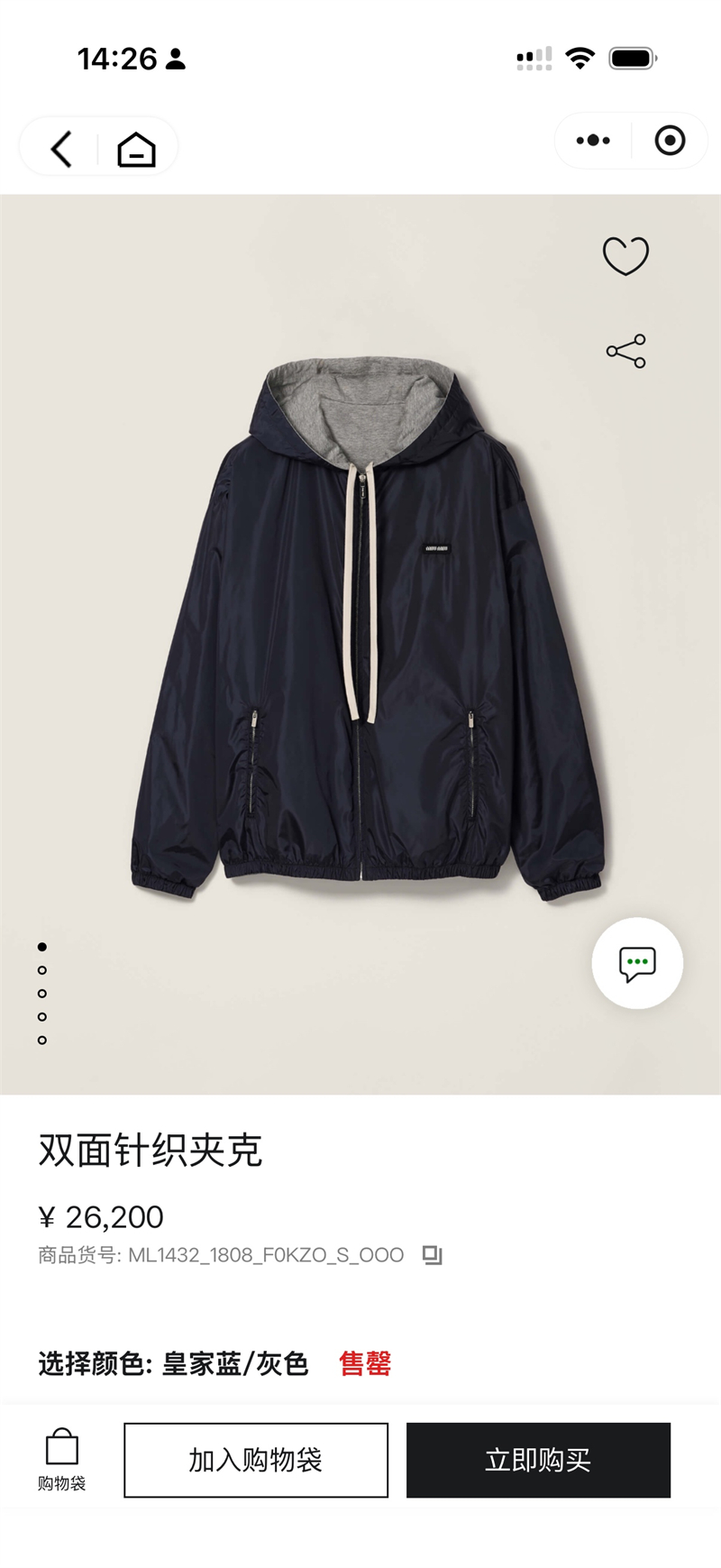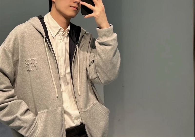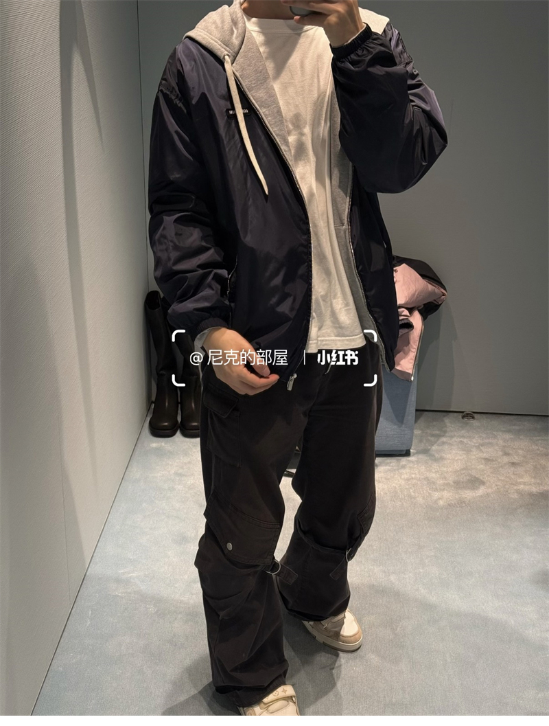 【YD공장】미우미우 리버서블 테크니컬 패브릭 저지 블루종 자켓
