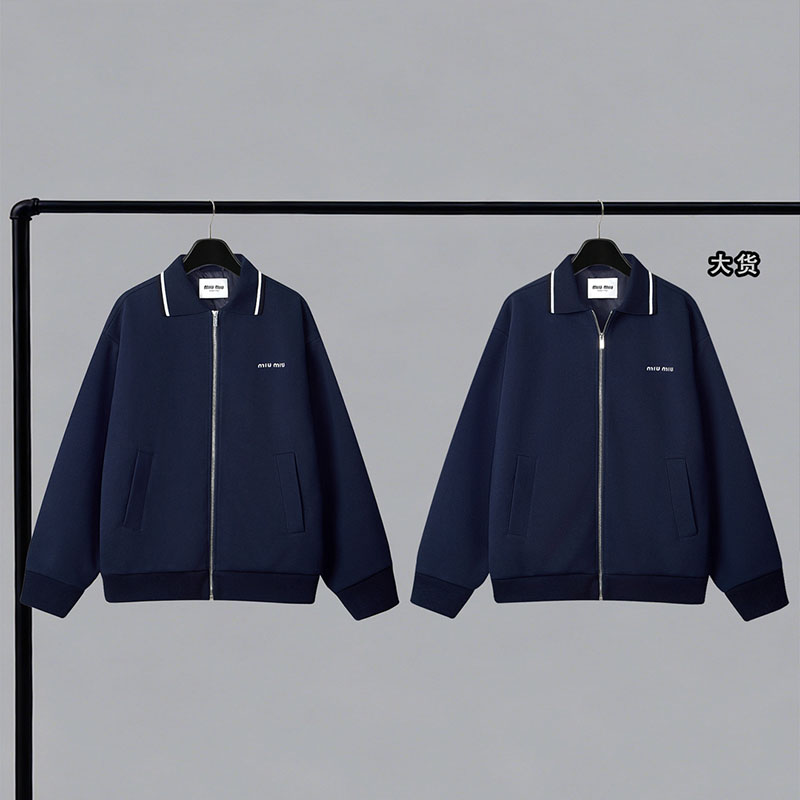 【YD공장】미우미우 본디드 피케 테크니컬 저지 블루종 자켓