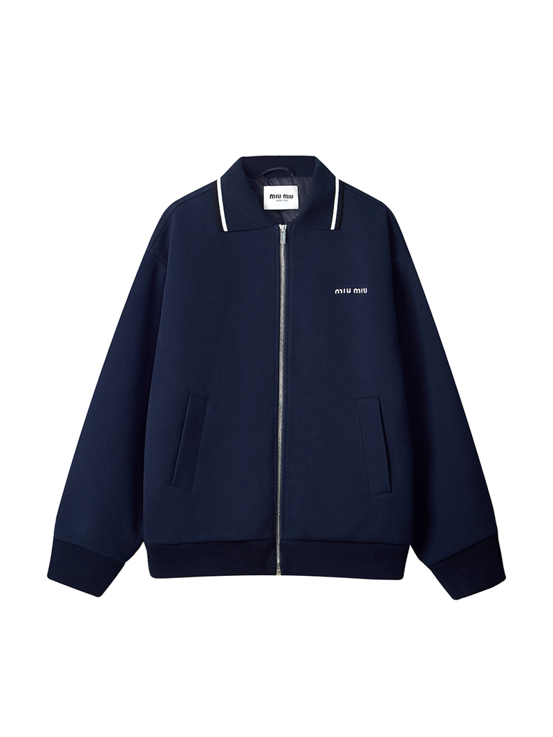 미우미우 본디드 피케 테크니컬 저지 블루종 자켓