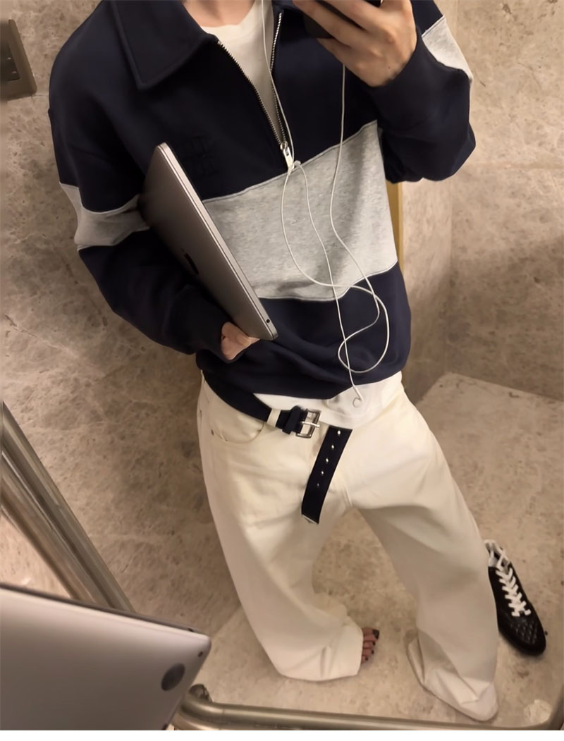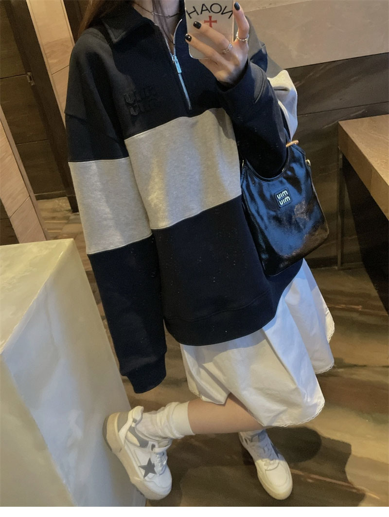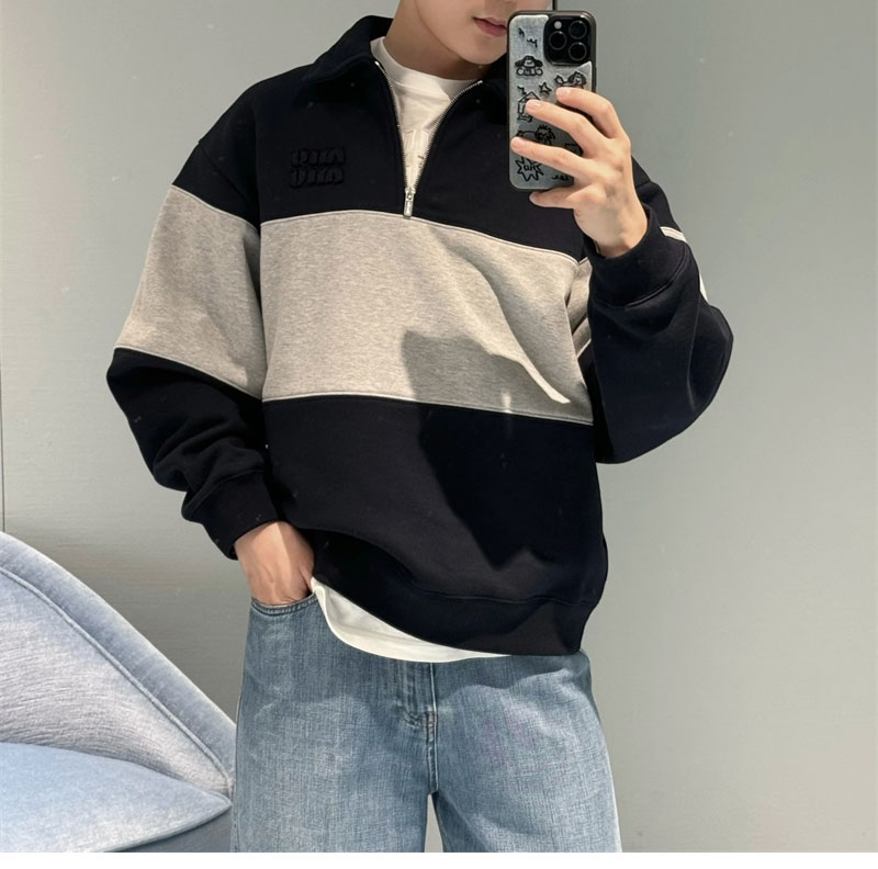 【YD공장】미우미우 하프 집업 코튼 스웨트셔츠