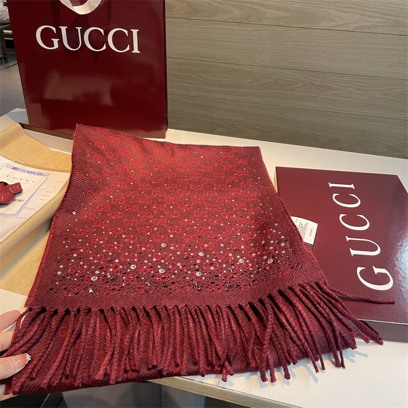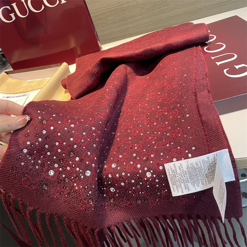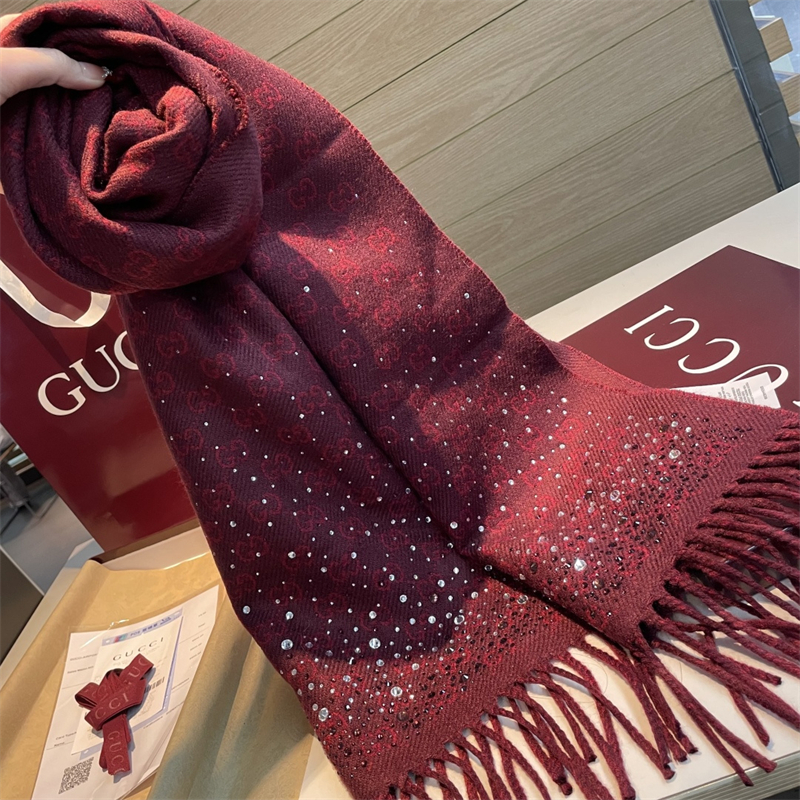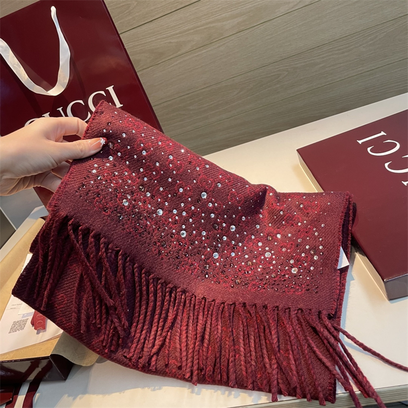 구찌 보르도 크리스털 장식 GG 울 스카프