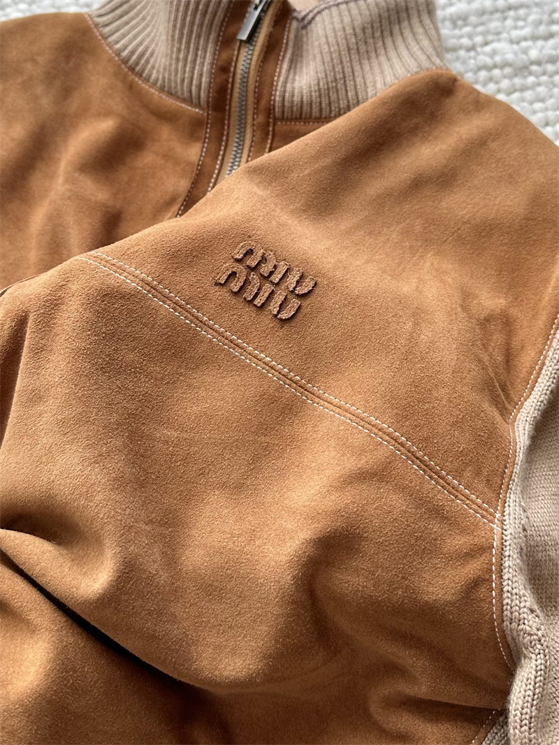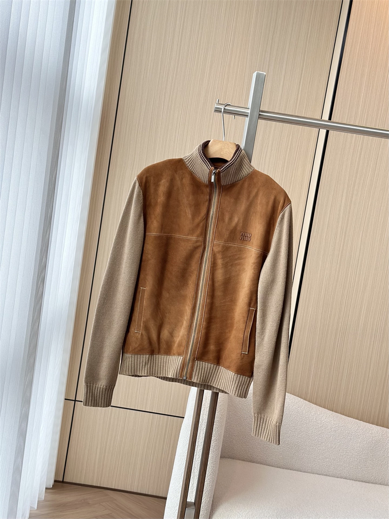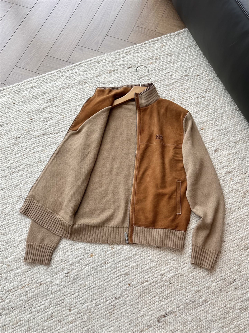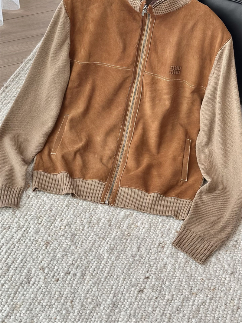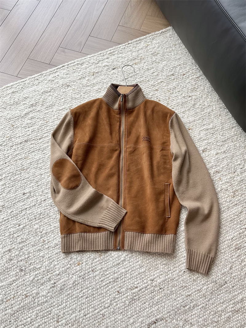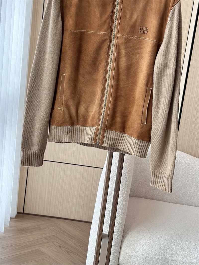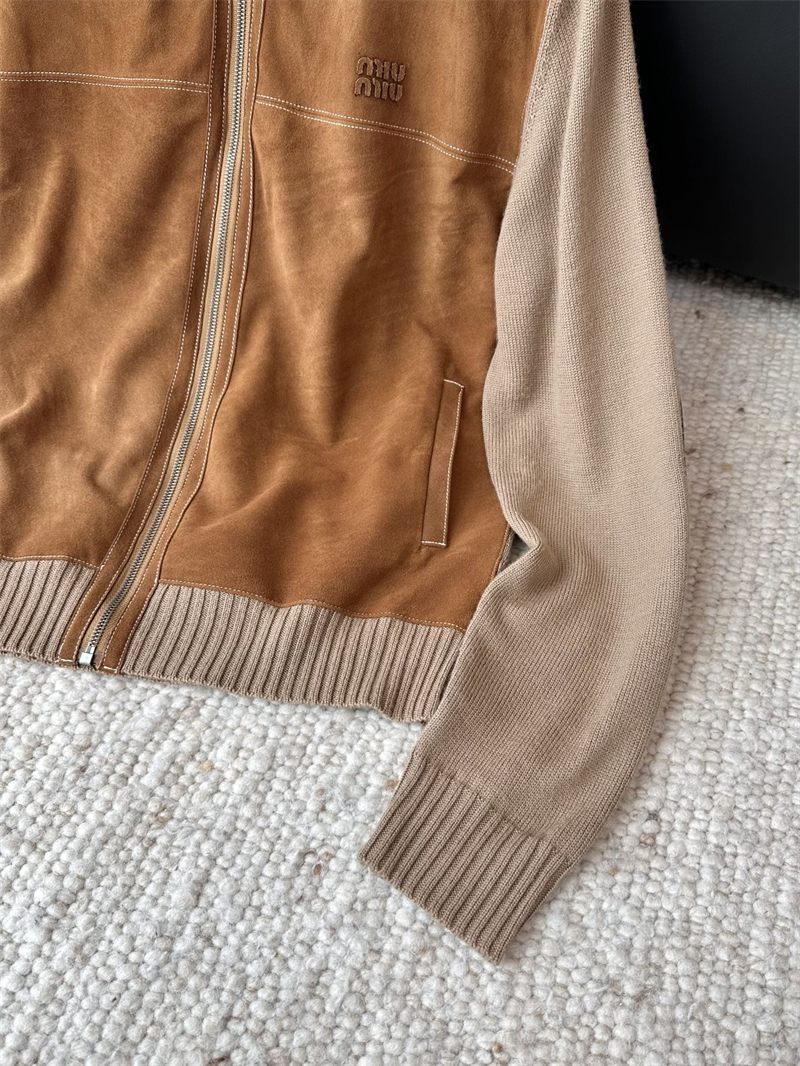 미우미우 울 앤 레더 지퍼 가디건
