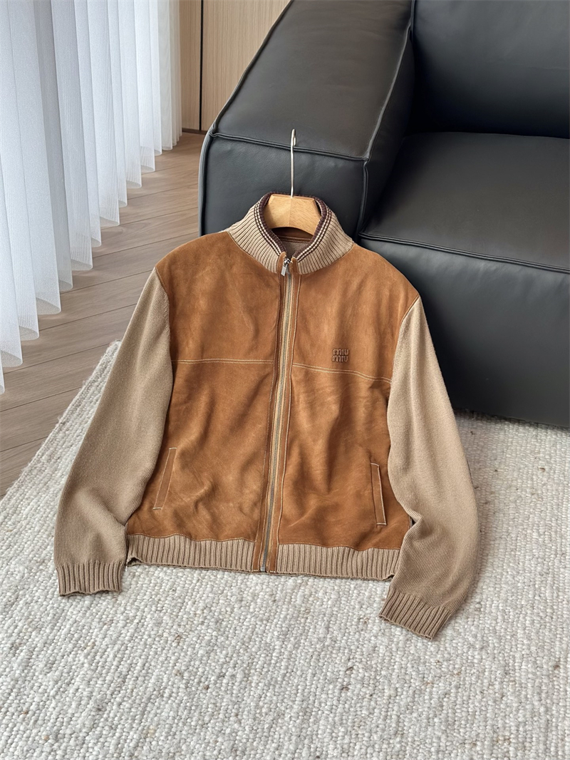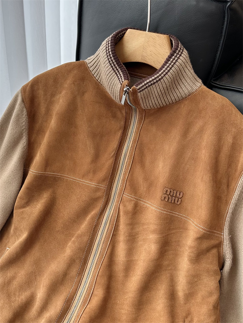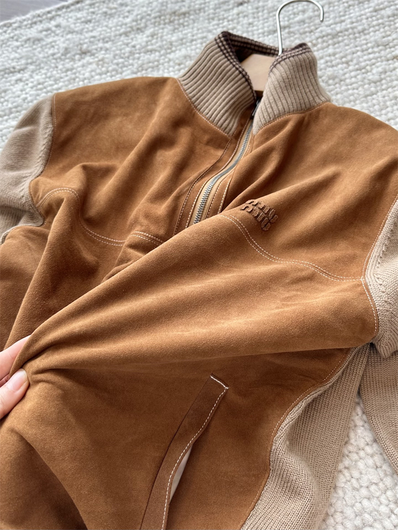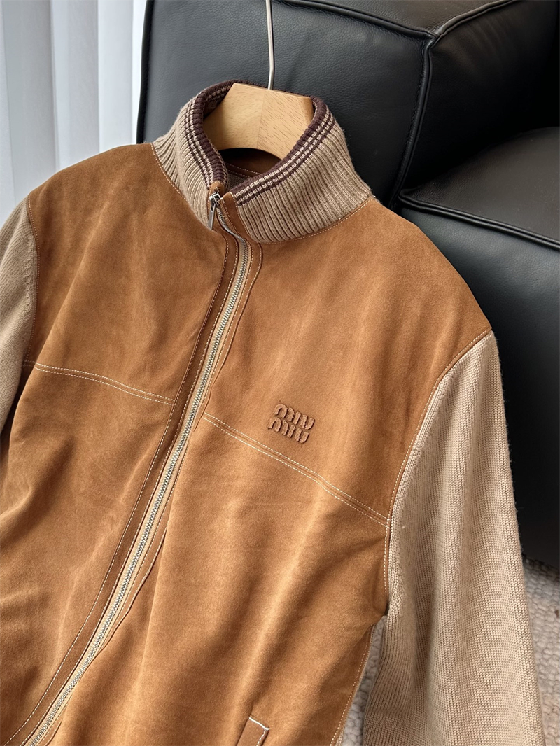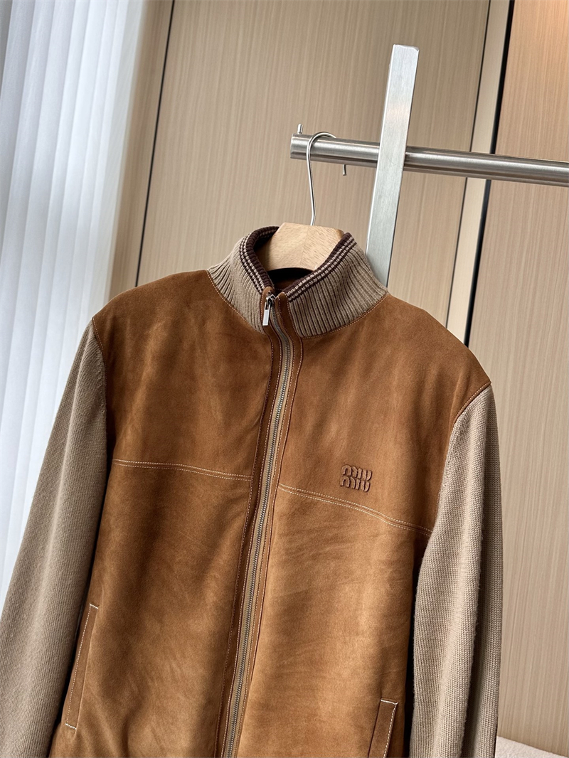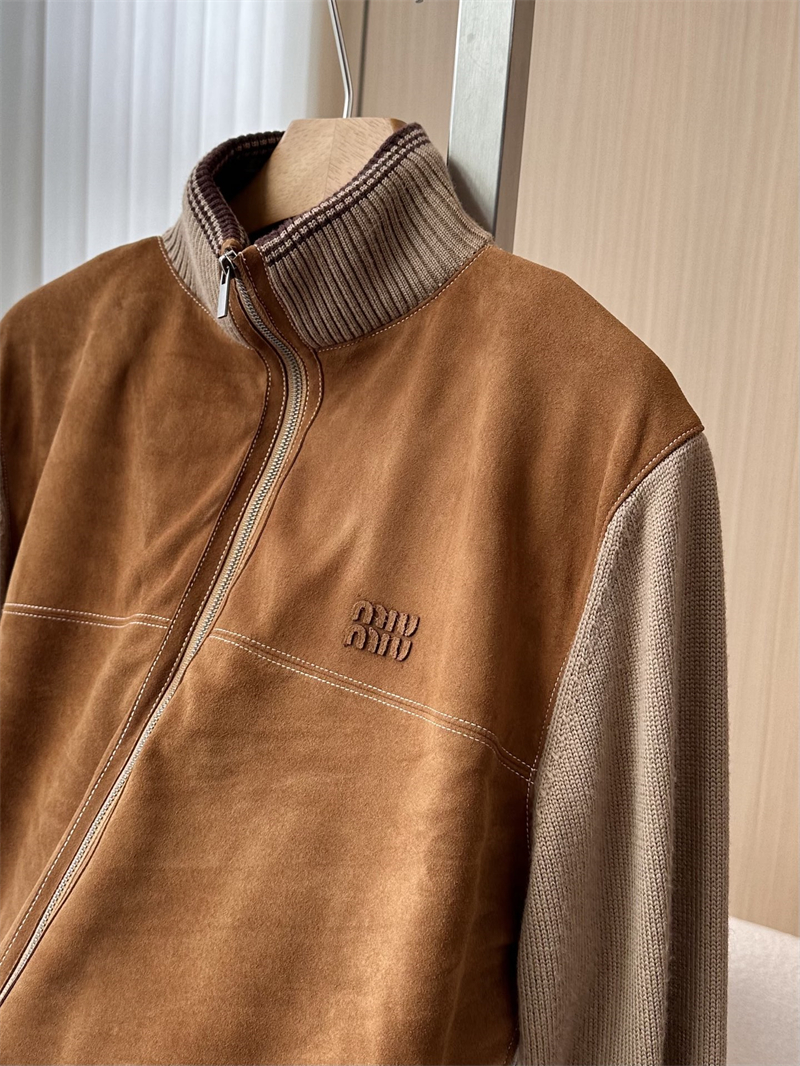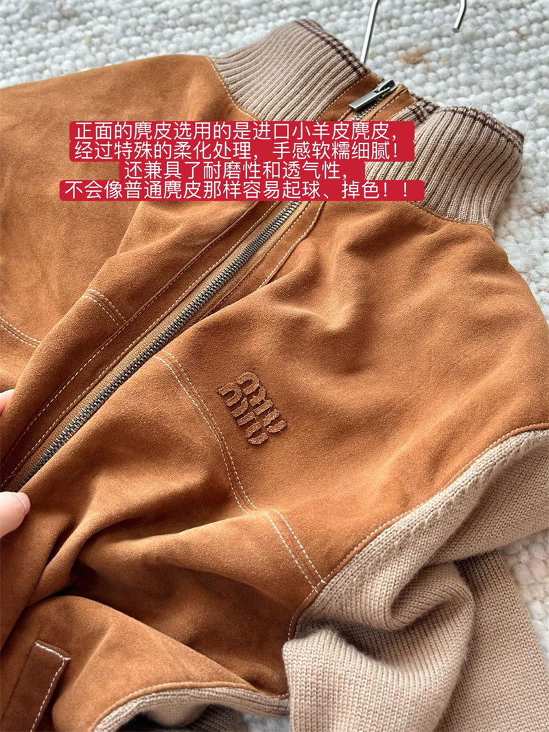 미우미우 울 앤 레더 지퍼 가디건