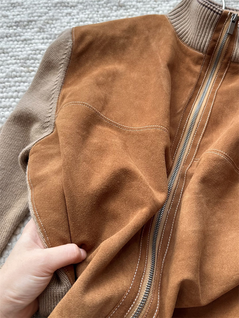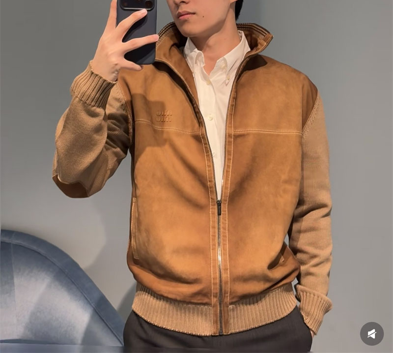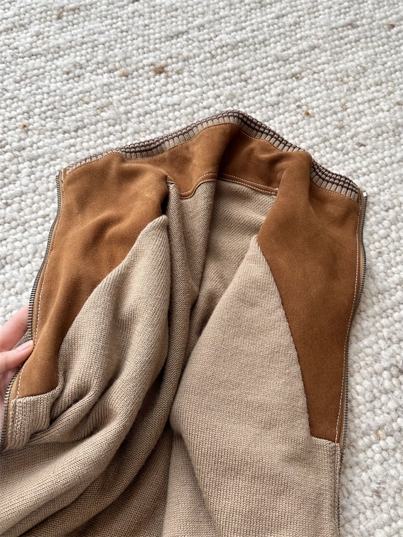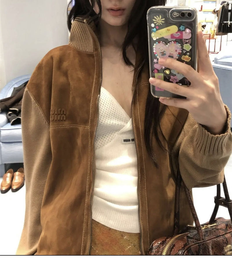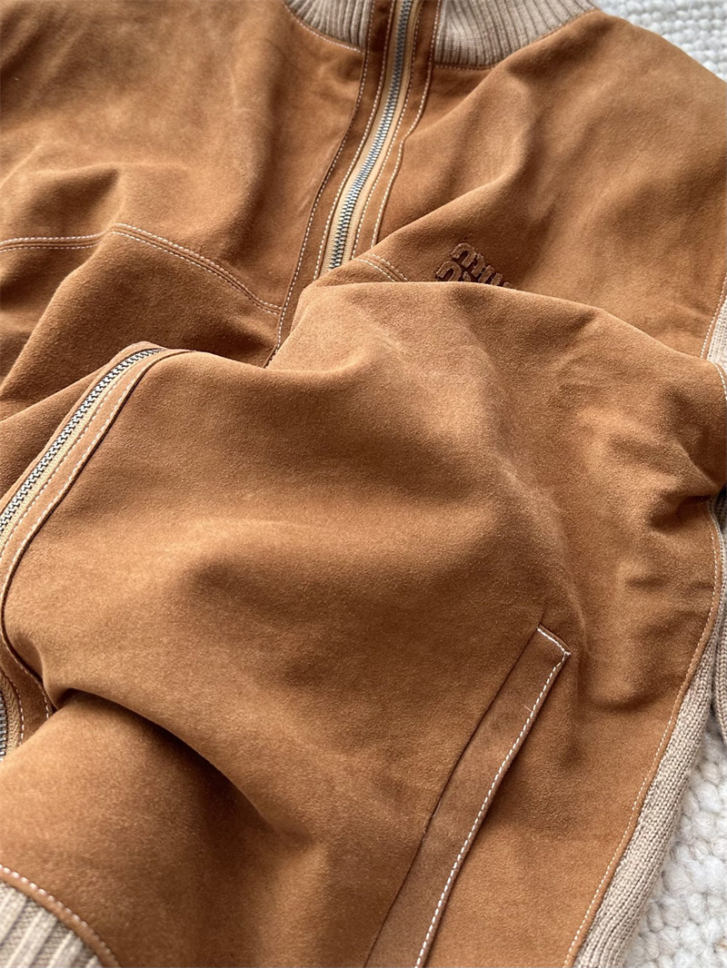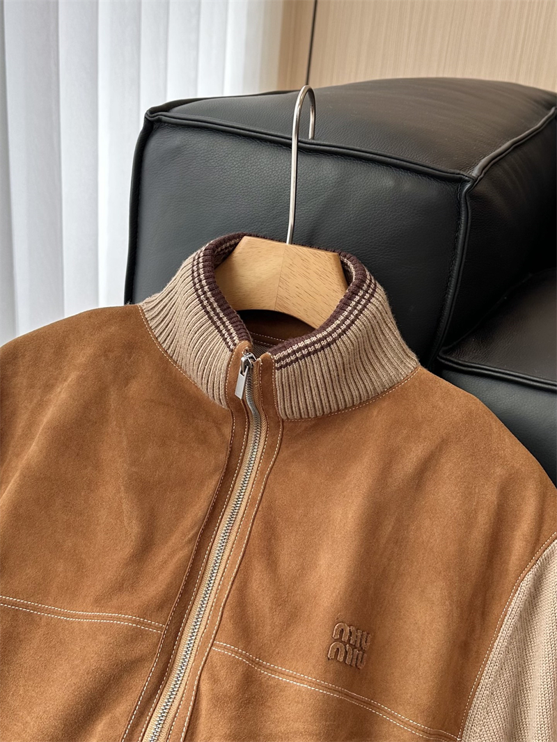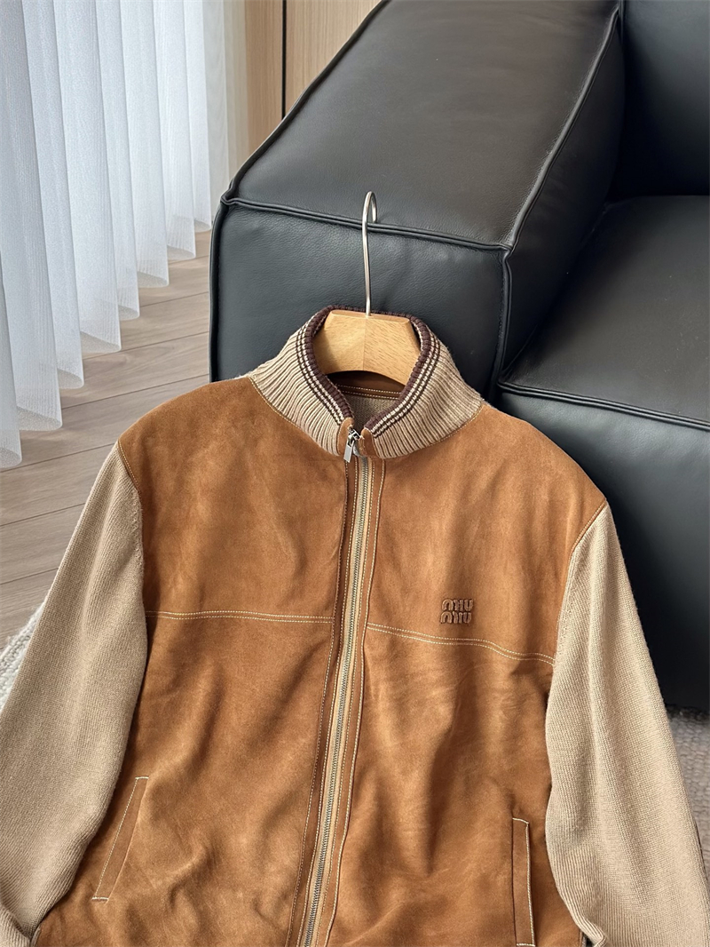 미우미우 울 앤 레더 지퍼 가디건