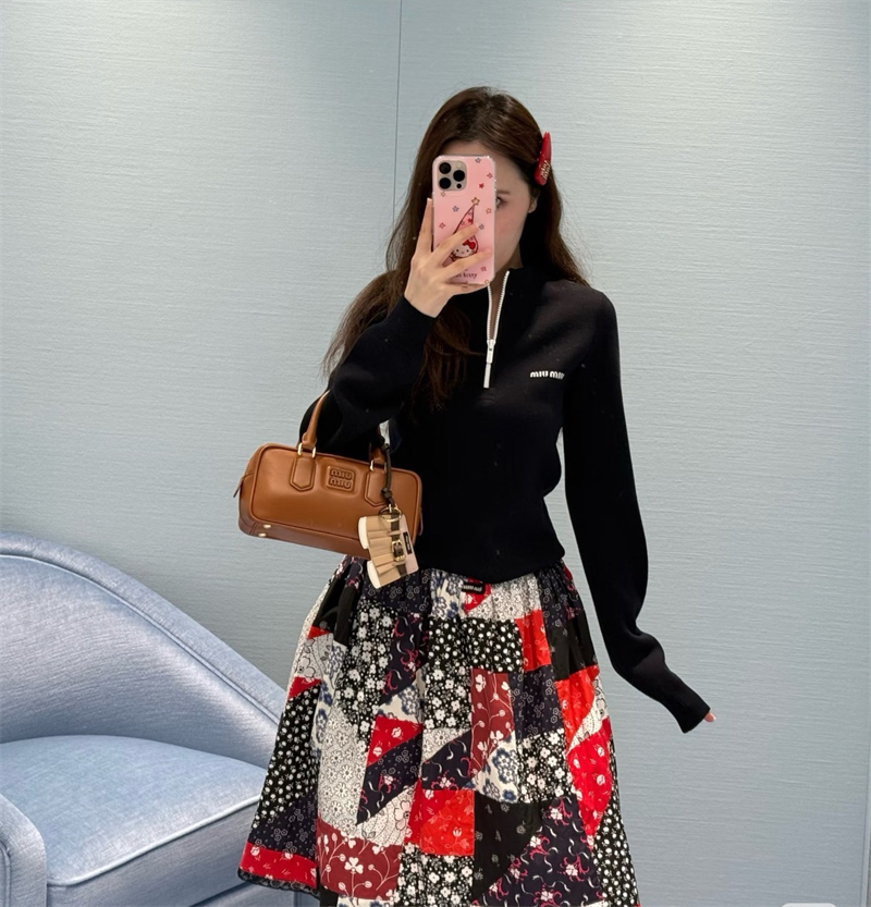 미우미우 울 하프 집업 스웨터 니트