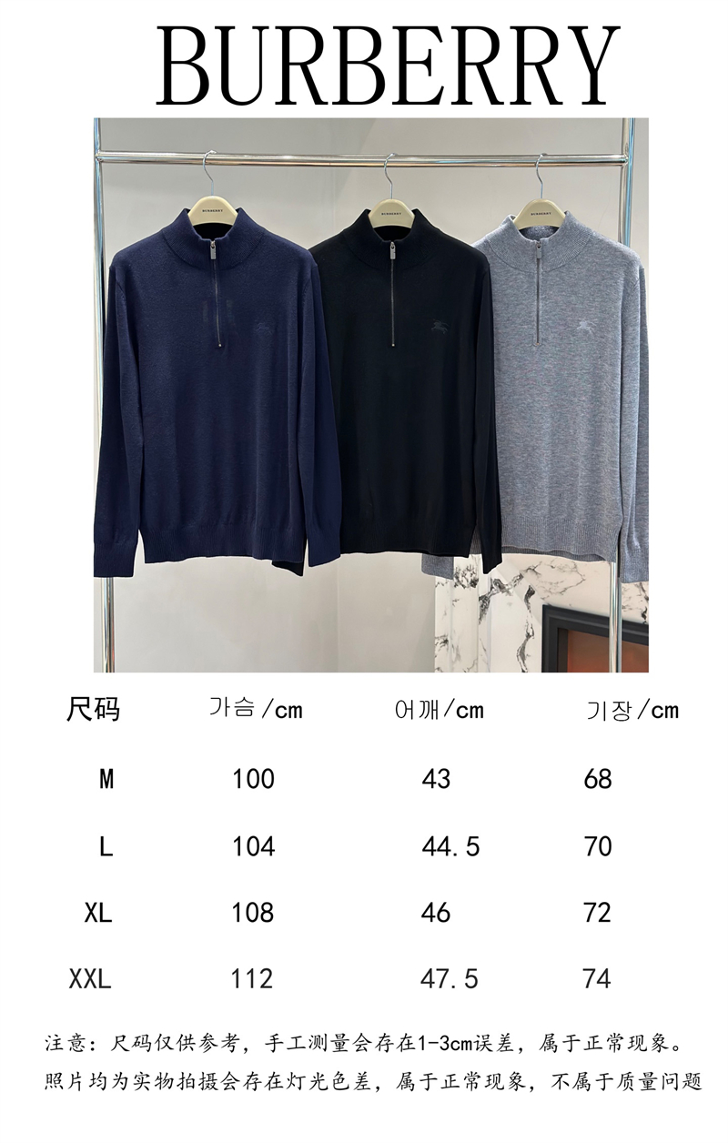 버버리 울 하프 집업 스웨터