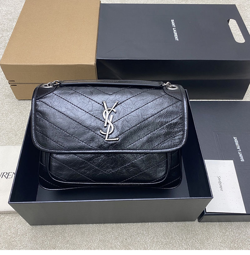 생로랑 니키 미디엄 빈티지 레더 숄더백 633158