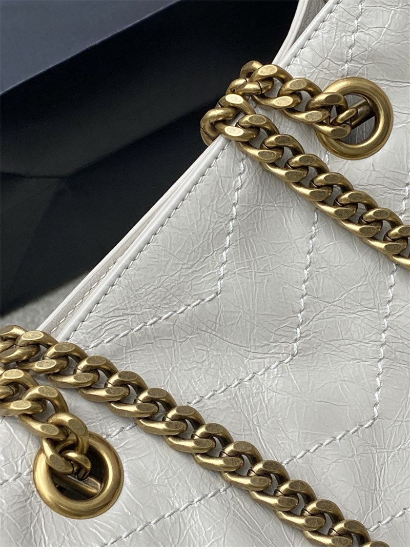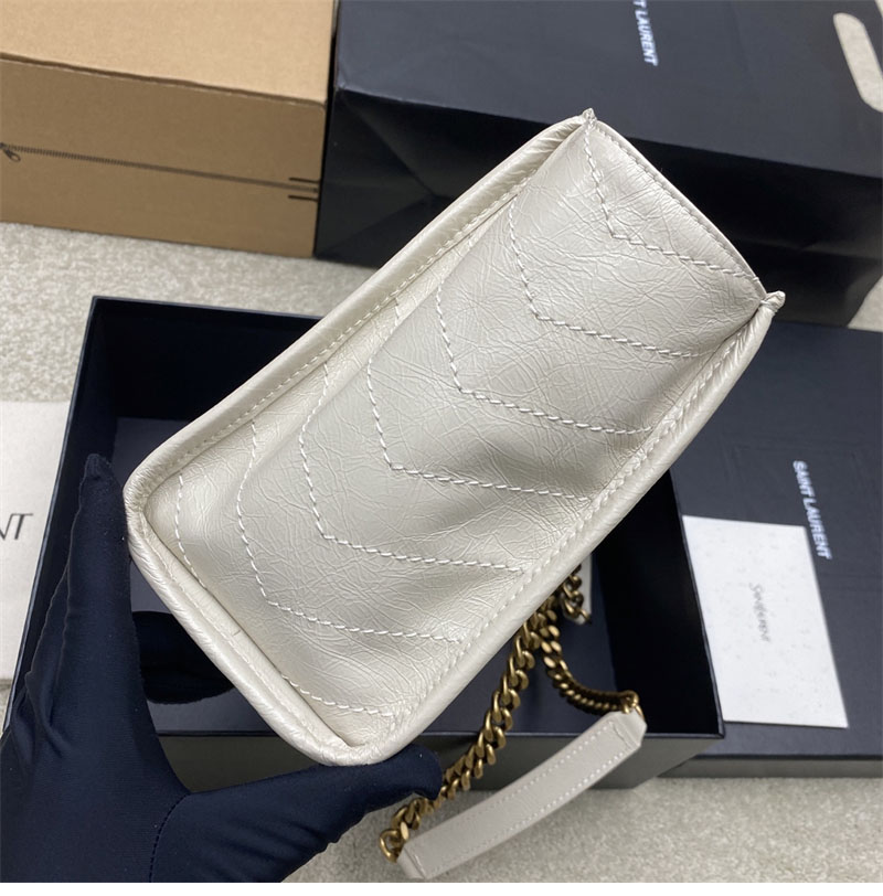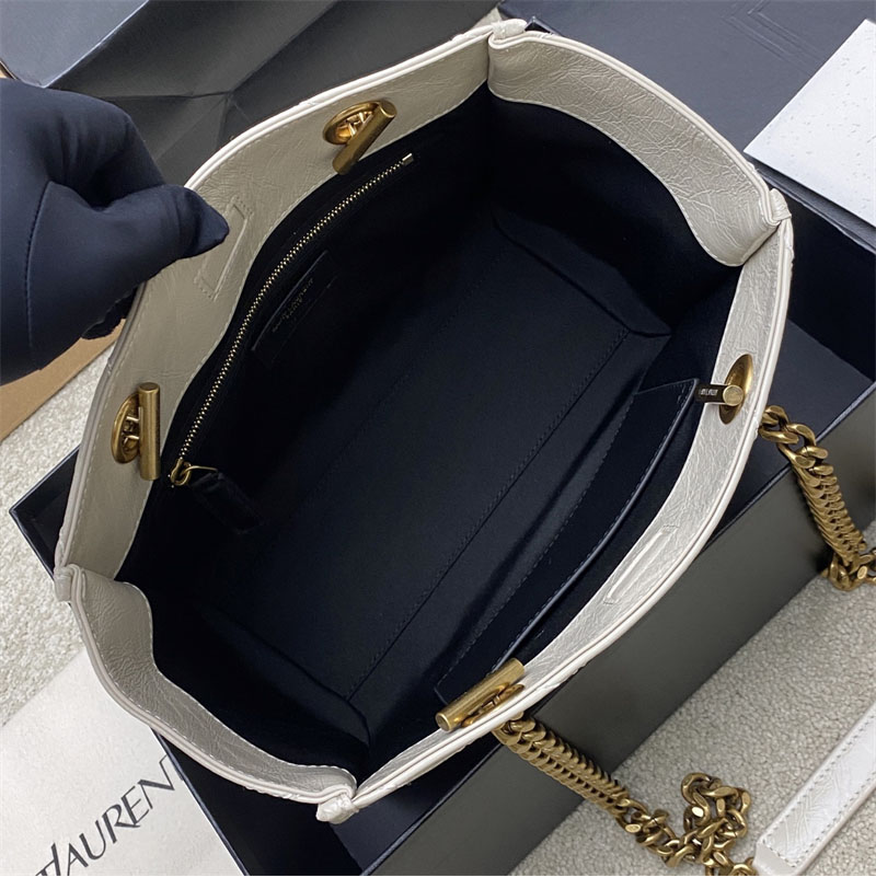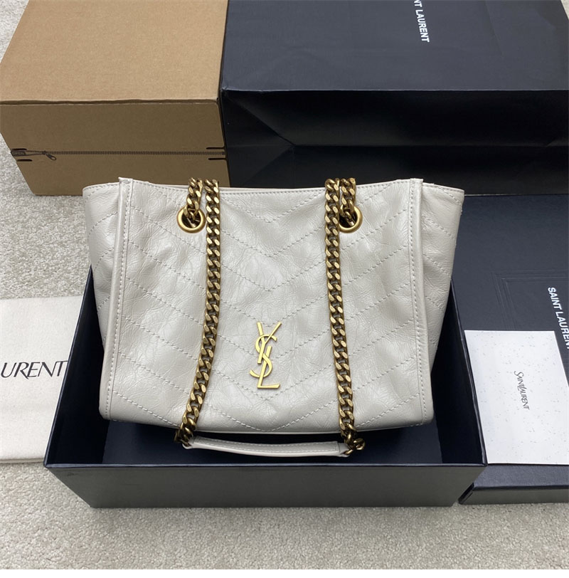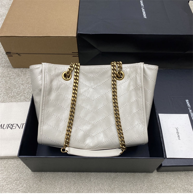 생로랑 니키 이스트 웨스트 스몰 쇼핑백 빈티지 카프스킨 화이트 872680
