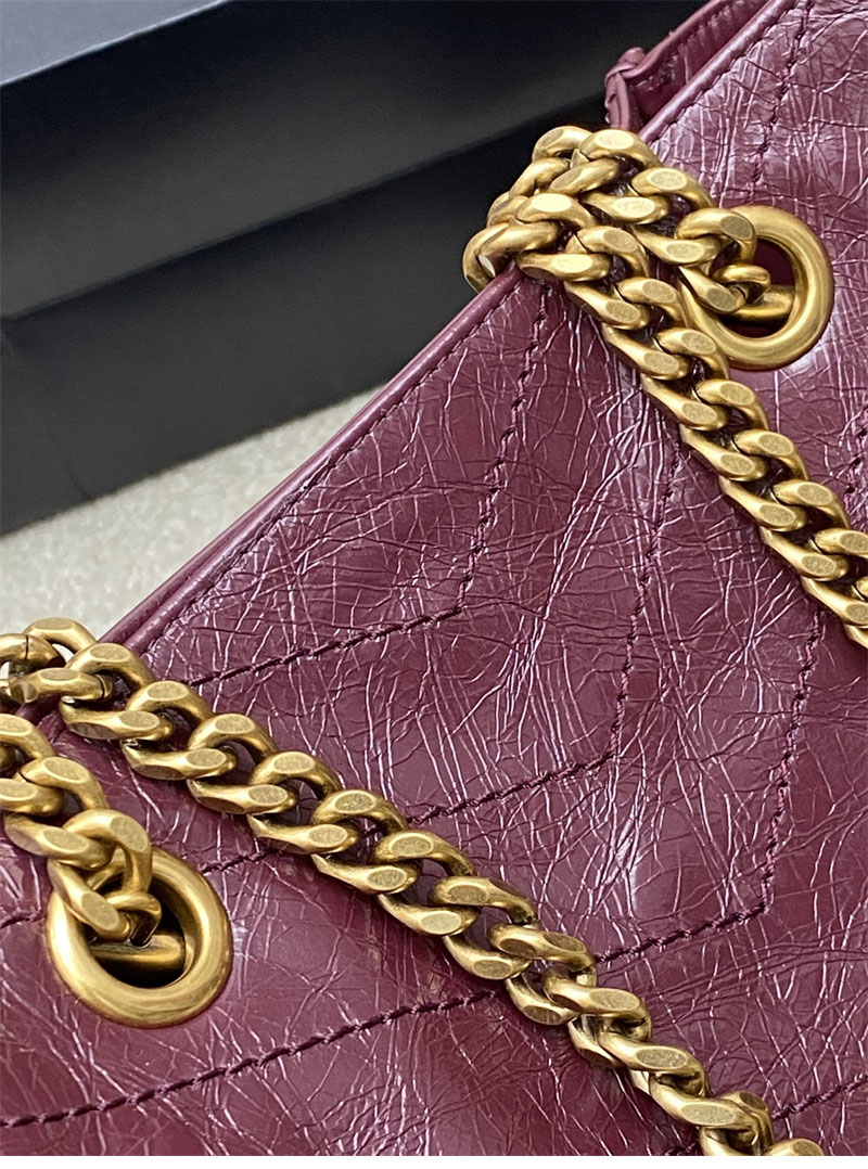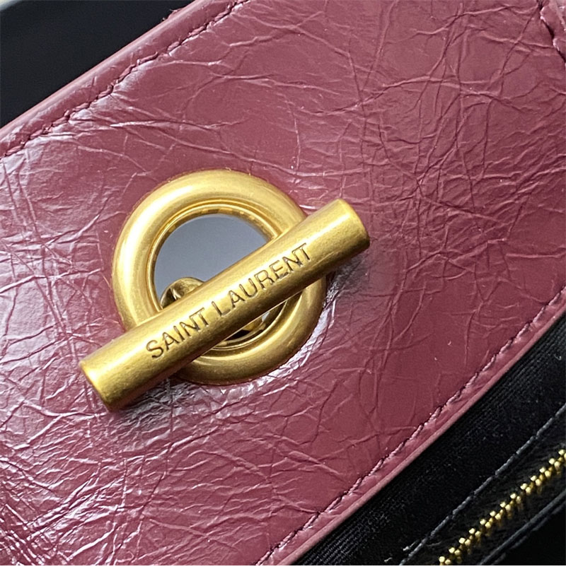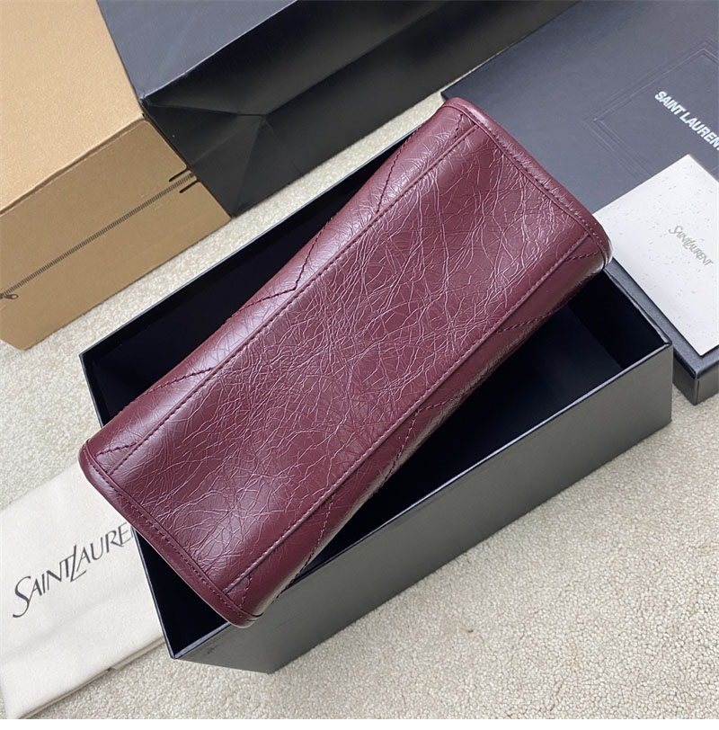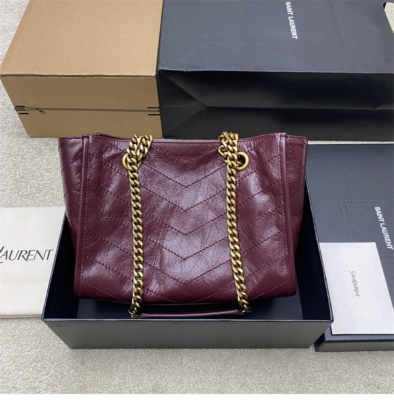 생로랑 니키 이스트 웨스트 스몰 쇼핑백 빈티지 카프스킨 버건디 872680
